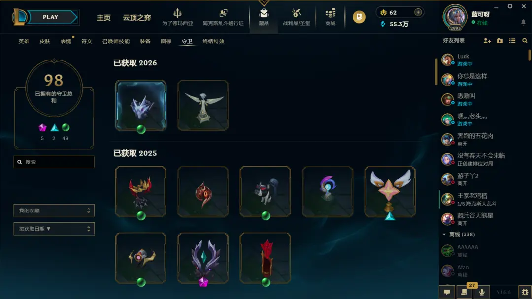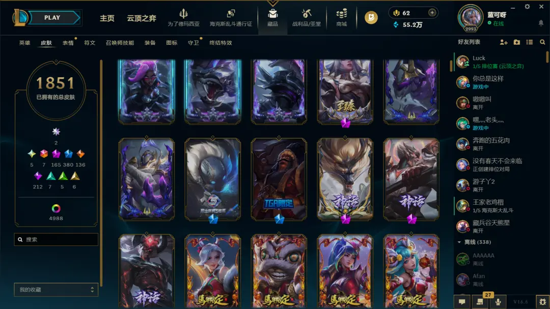 ⭐含1851纯皮➕4988炫彩➕224臻彩、651表情➕1772图标➕98守卫 ⭐2卓越5圣堂7终极165神话--------------