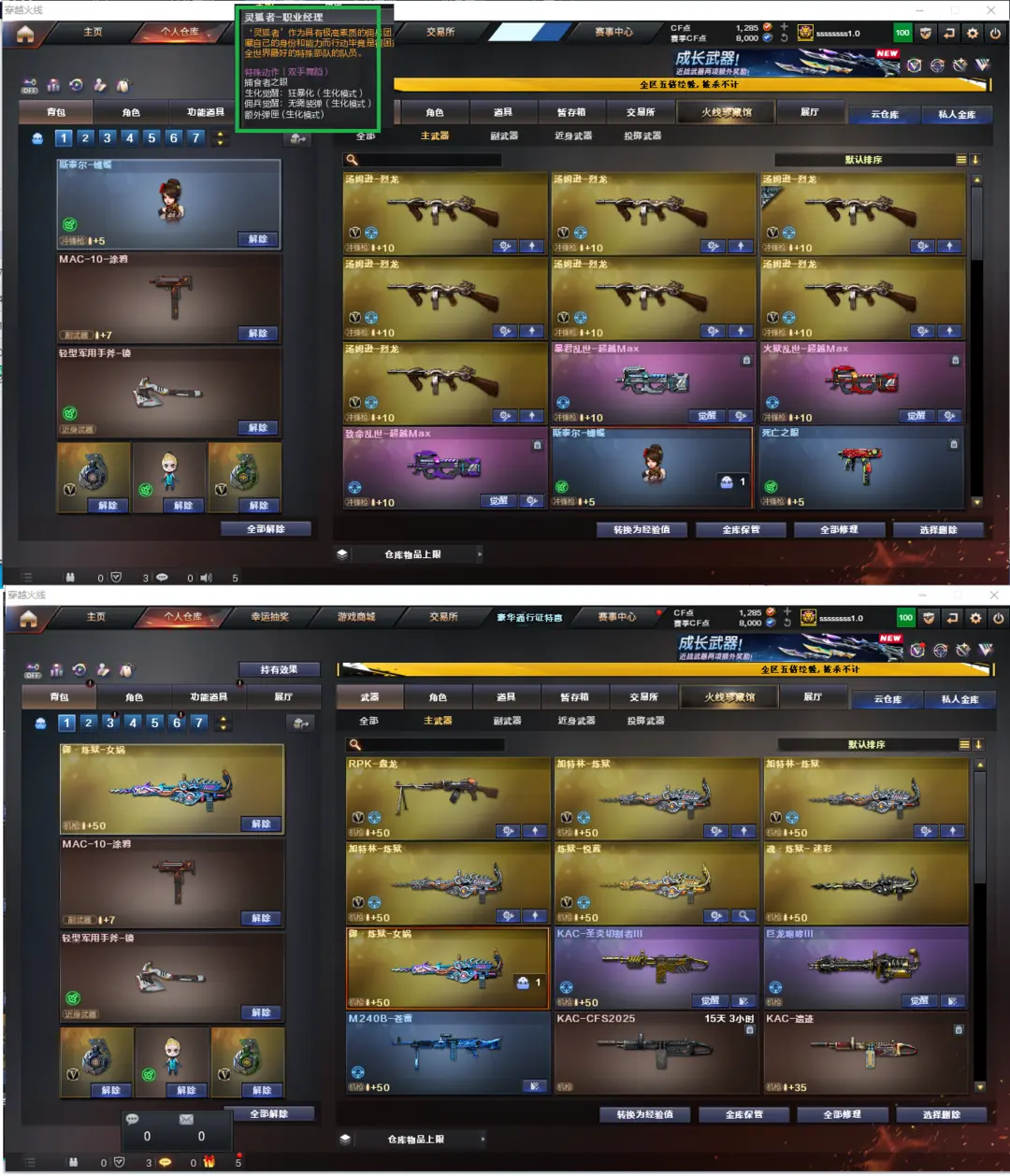 排位:可以、、、、、、、生化四防全装(生化背包更换、可以看僵尸血量):无需换弹、6烈龙、盘龙、4炼狱、斯泰尔蝴蝶、死亡之眼、MAC-涂鸦、手斧镜、生化减速雷、超级对讲机、全部弹匣、、、、、、、、、、、、爆破全装:2皮幻神音效(2022、黄忠皮肤)、98K星神、COP雷霆、破空枪刃、5个幻兽沙鹰、QBZ幻兽、白虎、QBZ金色蔷薇、、、幻神音效、毁灭音效、极光音效、黑骑士音效、、、5套幻兽、4套雷霆、5套雷暴、、、生化四防(职业经理)