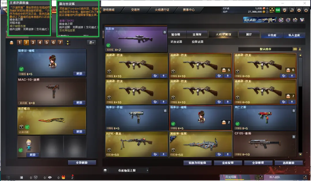 排位禁 赛,安全分不够,只能进普通频道和新版大厅玩匹配(等过几天就可以排位了)介意的别下单.-------------生化四防(可以变更背包、看僵尸血量): 无需换弹、6烈龙、炼狱、斯太尔-蝴蝶、双面神、死亡之眼、MAC-涂鸦、炽芒蝶刃、生化减速雷、、、、、、、爆破四防:幻神音效(AG、动感闪耀皮肤)、USP神工天巧、柯尔特竞技荣光、COP雷霆王者、G36幻影、传说光耀、王者蔷薇、白虎、、、幻神音效、雷神音效、黑骑士音效、、、2套幻灵、3套神工天巧、2套雷霆王者、、、生化四防(王者沙漠玫瑰、嘉年华灵狐)、爆破四防(晴雅、王者惊若翩鸿、王者华冠丽服、王者涂鸦)