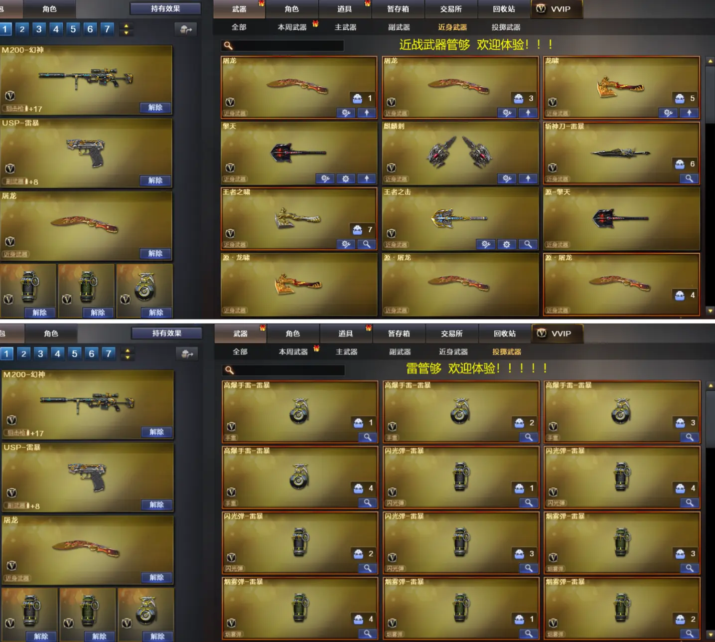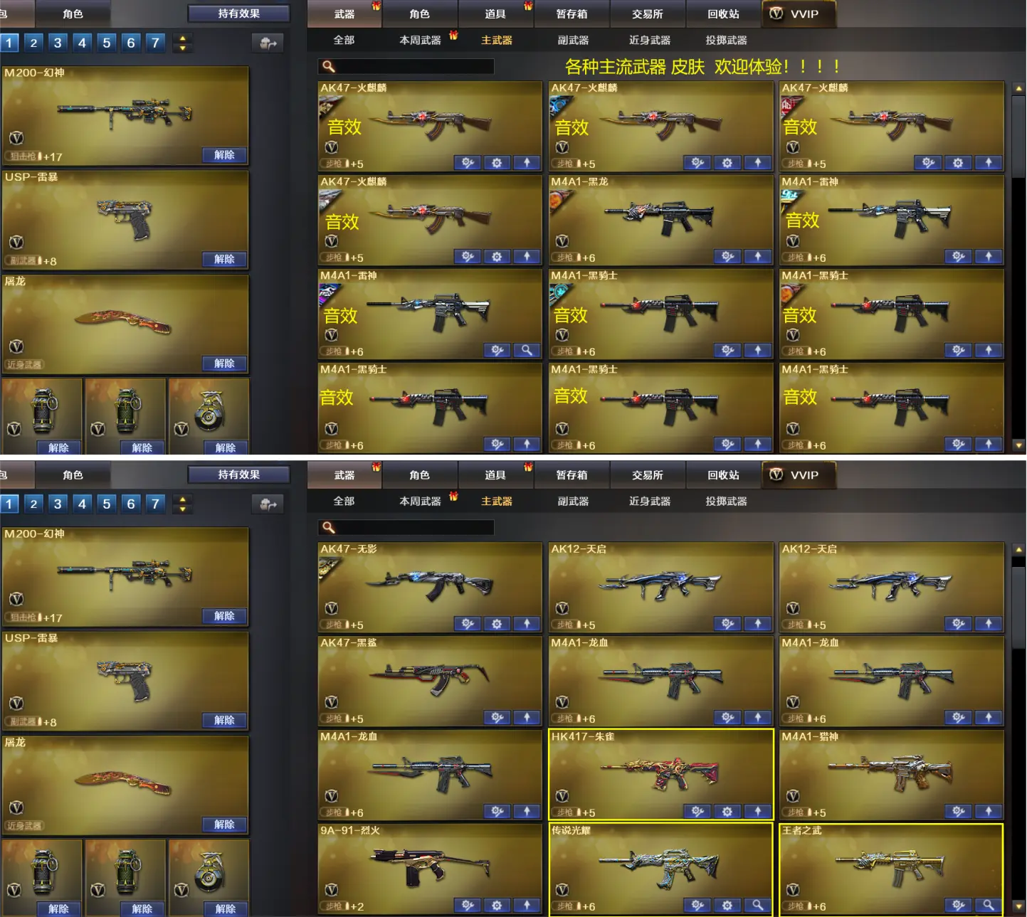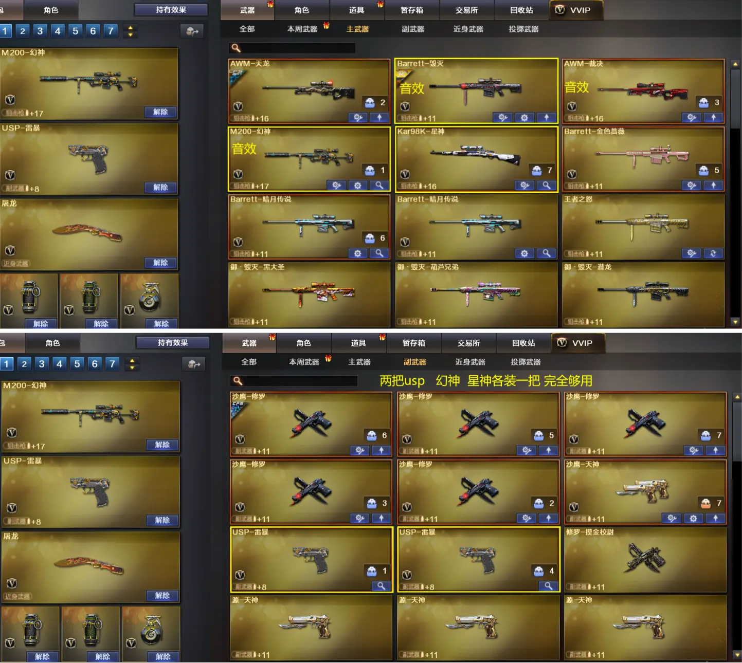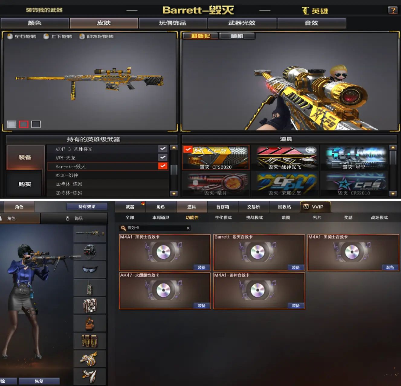 (上不了-登五次或者问号主)音效385v幻神/星神/蝴蝶斯泰尔/传说光耀/朱雀赛事皮肤四防职业经理全音效 雷暴套装 雷暴usp手枪x2 烈龙x6 盘龙x6 加特林悦蓝觉醒 皮肤:毁灭CFS2020、毁灭战神张飞、毁灭星空、雷神CFPLS14冠军、雷神冠军之魄、雷神虎将、雷神耀金、火麒麟AG战队、火麒麟华夏之心、火麒麟轻羽、火麒麟雷神、火麒麟CFSTAR、无影耀金、修罗CFS2018等等皮肤 多光效多玩偶。
