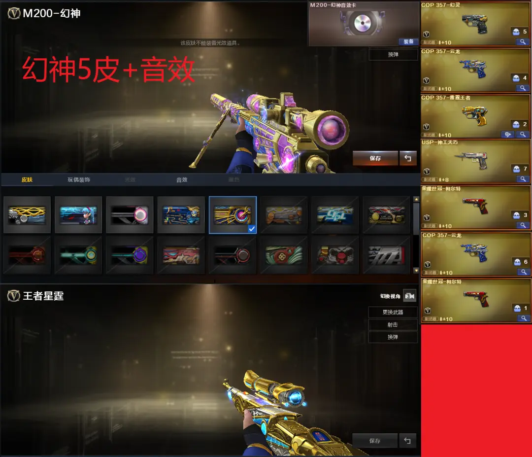 排位:可以、、、、、、、、、爆破四防:幻神5皮+音效(宠儿、幻神-Heartshot皮肤、曹操、周瑜、白鲨皮肤)、王者星霆、、、、USP神工天巧、2个COP云龙、COP幻灵、COP雷霆王者、2个世冠柯尔特、白虎、QBZ1911银翼、QBZ云龙、QBZ金色蔷薇、王者蔷薇、2吧炽芒蝶刃、、、幻神音效、白虎音效、蔷薇音效、雷神音效、火麒麟音效、黑骑士音效、、、爆破四防(传说女帝、传说艾丽莎、王者貂蝉、王者炫、雨棠、职业经理)