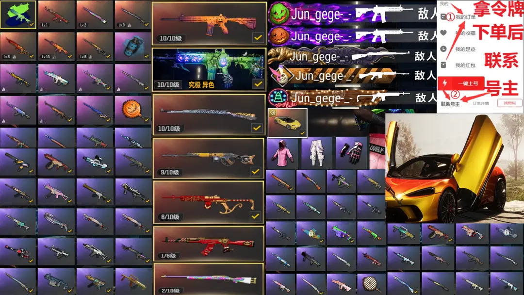 10神器异色✅⑩异色M4⑩异色捣蛋⑩猛虎98K⑨齿轮大炮⑥圣诞迷你圣诞AK迈凯伦柏林战神悲喜可排位