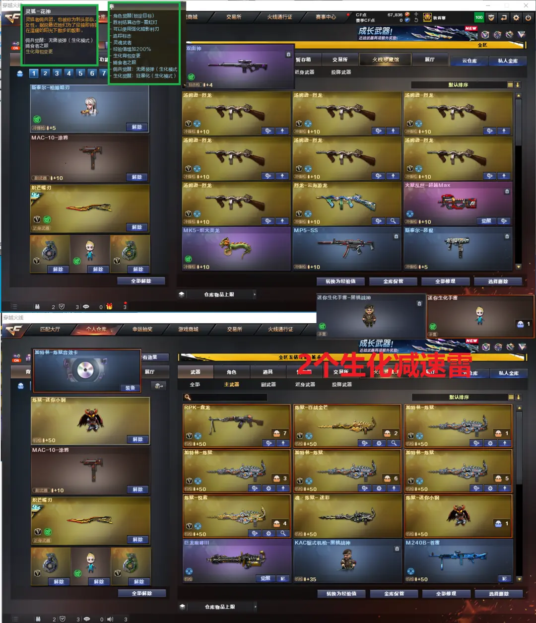 排位:可以、、、、、、、、生化四防:(可以变更背包、查看生化僵尸血量):无需换弹、6烈龙、盘龙、6炼狱+音效、斯太尔枪娘暗刃、MK5-炽火炎龙、双面神、死亡之眼、MAC涂鸦、炽芒蝶刃、手斧镜、2个生化减速雷、超级对讲机、减少停顿道具、全部弹匣、、、、、、、、、爆破四防:幻神9皮+音效(星火小队、24AG冠军、23白鲨、宠儿、AG、冠军之幻、白鲨、周瑜、黄忠皮肤)、传说灵眸、传说幽瞳、王者风神、98K星神、、、、、传说幽冥、USP冥王、USP雷暴、2个COP幻灵、COP雷霆、COP云龙、2个23白鲨柯尔特、冠军之特、世冠柯尔特、、、、传说夜影、传说梦魇、G36幻影、天戎、白虎、QBZ云龙、QBZ金色蔷薇、、、幻神音效、裁决音效、星神音效、蔷薇音效、白虎音效、雷神音效、毁灭音效、炼狱音效、天罚音效、玄武音效、极光音效、火麒麟音效、黑骑士音效、、、1套幻兽、6套雷霆、8套幻灵、7套云龙、1套玄豹、、、生化四防(隼、灵狐-花神)爆破四防(传说艾莉莎、关小雨、影豹、王者貂蝉、王者迷迭香、王者凌霄、王者涂鸦、女主播)