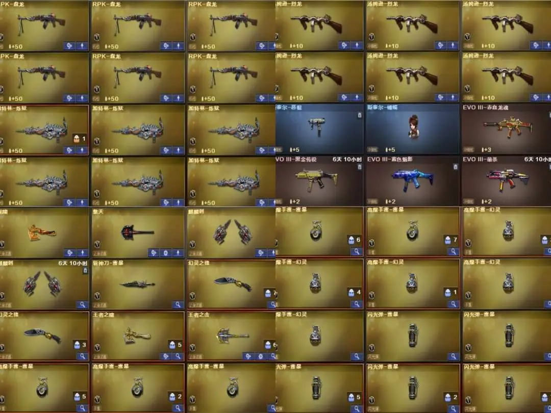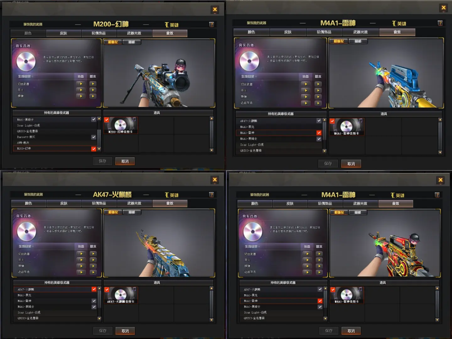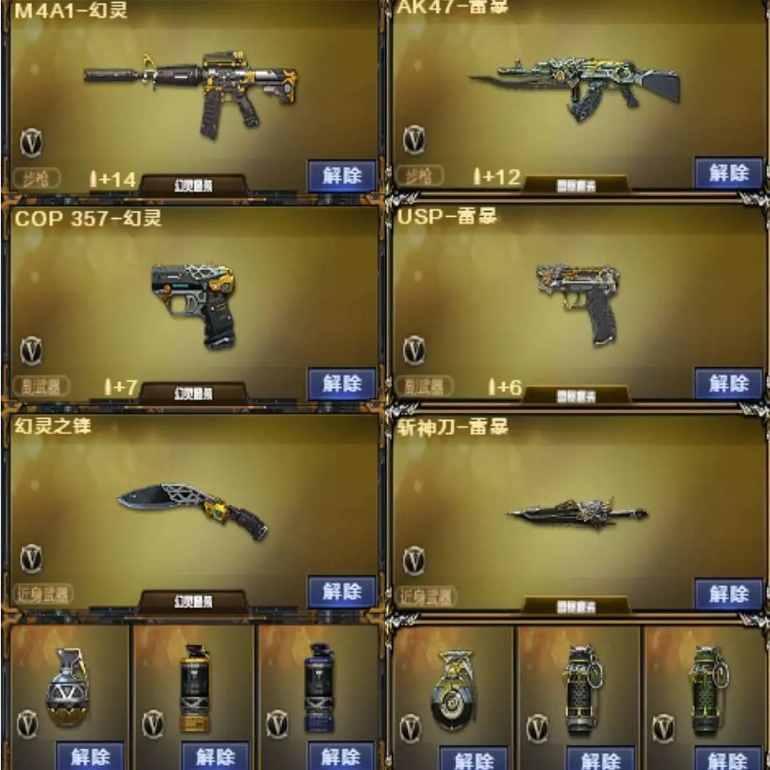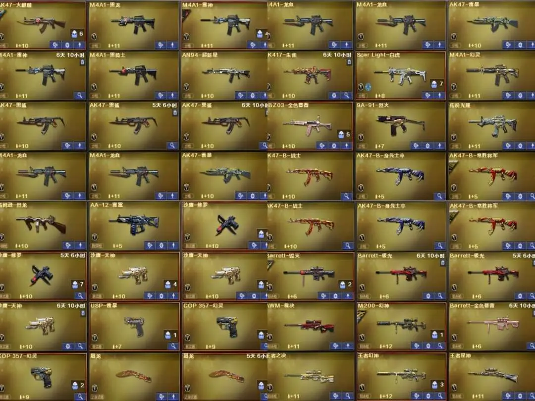 【主武器】M200幻神,王者幻神,传说光耀,白虎,幻灵m4,雷暴AK47,王者之决,裁决,毁灭,雷神,黑龙,黑骑士,火麒麟,9a91烈火,斯太尔蝴蝶,6烈龙,6盘龙,炼狱等等..