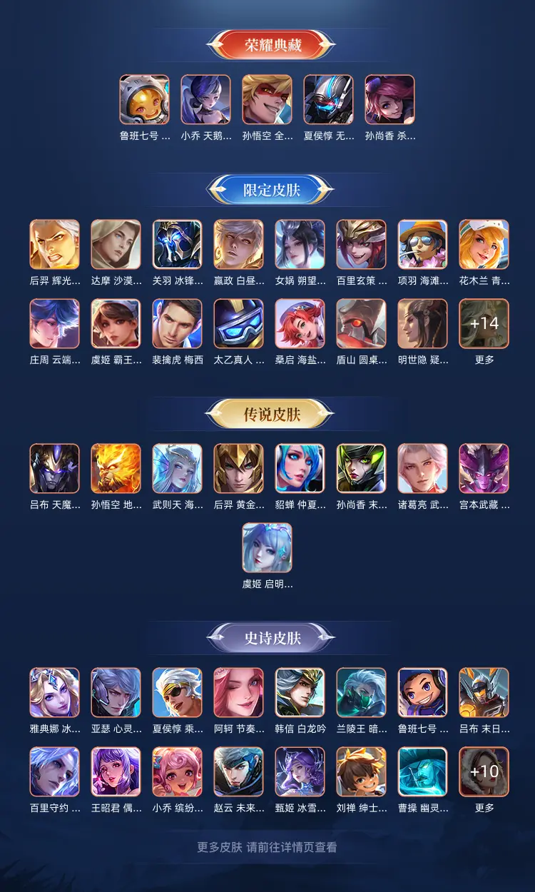 本游戏账号: V10用户,基础段位:尊贵铂金I,英雄多,皮肤多。典藏皮肤5个,感受典藏皮肤带来的优质体验快感, 私人所属英雄皮肤有:孙尚香 杀手不太冷||鲁班七号 星空梦想||夏侯惇 无限飓风号||孙悟空 全息碎影||小乔 天鹅之梦诸葛亮 武陵仙君||孙尚香 末日机甲||吕布 天魔缭乱||宫本武藏 地狱之眼||武则天 海洋之心||貂蝉 仲夏夜之梦||艾琳 觅芳踪||孙悟空 地狱火||后羿 黄金射手座||虞姬 启明星使,等等