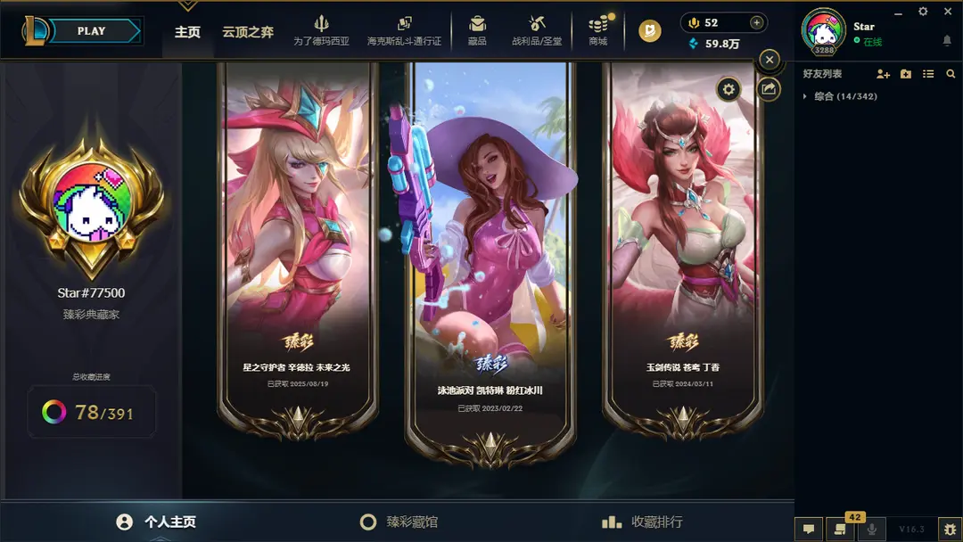 | 角色: Star#77500 | 等级: 3315级 华贵铂金II |