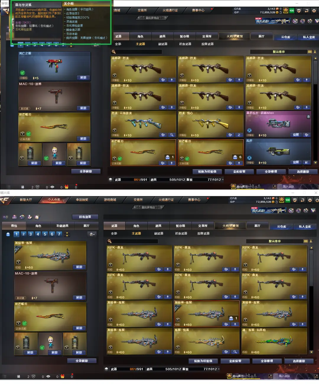 排位:可以------------生化全装(生化背包、可以查看生化僵尸血量)无需换弹、6烈龙、6盘龙、炼狱、死亡之眼、MAC-涂鸦、2个炽芒蝶刃、生化减速雷、、、、爆破四防:幻神音效(宠儿、2022、电流骇客)COP雷霆、COP堕天神、传说辉光、G36幻影、白虎、、、幻神音效、裁决音效、白虎音效、毁灭音效、雷神音效、蔷薇音效、火麒麟音效、黑骑士音效、、、7套唐雷、5套堕天神、2套云龙、、、、生化四防(关小雨、嘉年华灵狐)、爆破四防(王者零)
