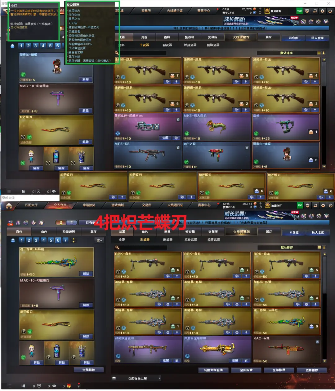 排位:可以------------------生化全装(生化模式换背包、看血量):无需换弹、6烈、3盘、5炼狱、斯泰尔蝴蝶、MK5-炽火炎龙、毒蜂、死亡之眼、MAC涂鸦、4把蝴蝶刀、生化减速雷、全部弹匣、、、、、、、、、爆破四防:幻神2皮+音效(幻神-Heartshot皮肤、周瑜皮肤)、传说幽瞳、王者星神、王者星霆、、、、、、传说幽冥、COP云龙、柯尔特竞技荣光、冠军之特、COP雷霆王者、传说圣灵、白虎、QBZ云龙、QBZ金色蔷薇、、、幻神音效、白虎音效、毁灭音效、雷神音效、黑龙音效、火麒麟音效、、、1套雷霆、1套雷暴、1套幻灵、6套竞技荣光、1套云龙、1套雷霆王者、、、生化四防(传说影煞、小红)、爆破四防(云悠悠、晴雅、岚兮儿、王者春、王者迷迭香、王者凌霄、王者潘多拉、王者岚兮儿)