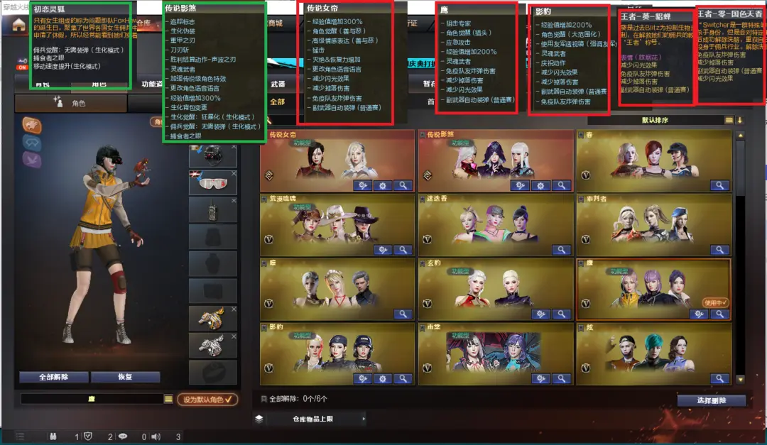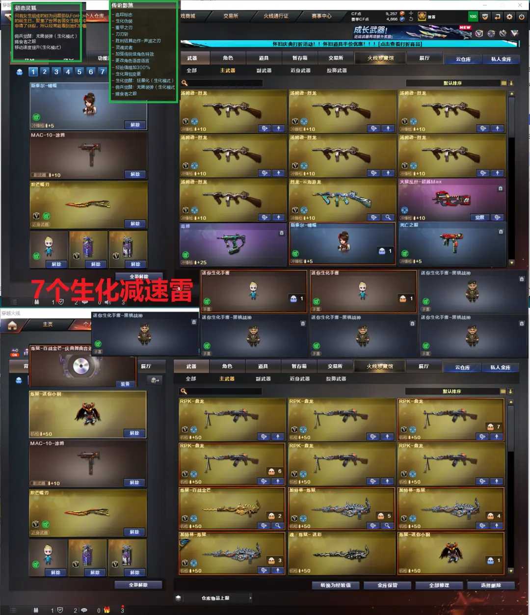 排位:可以、、、、、、、生化精品(可以变更背包、查看生化僵尸血量):无需换弹、6烈龙、6盘龙、4炼狱+音效、斯泰尔蝴蝶、毒蜂、死亡之眼、MAC-涂鸦、炽芒蝶刃、手斧镜、7个生化减速雷、超级对讲机、全部弹匣、、、、、爆破四防:幻神13皮+音效(23白鲨、宠儿、冠军之幻、白鲨、AG、周瑜、2022、巅峰荣耀、降龙、纸灯笼、电流骇客、N9、黄忠皮肤)、98K星神、王者星神、、、、USP冥王、USP雷暴、COP雷霆、2个COP堕天神、2个COP幻灵、USP神工天巧、COP云龙、2个世冠柯尔特、2个冠军之特、、、、、、G36幻影、玄豹白虎、白虎、QBZ金色蔷薇、传说辉光、传说梦魇、、、、幻神音效、裁决音效、星神音效、蔷薇音效、白虎音效、毁灭音效、雷神音效、黑龙音效、极光音效、火麒麟音效、黑骑士音效、、、5套雷霆、7套雷暴、4套堕天神、5套夜魔、1套电竞装甲、6套幻灵、7套竞技荣光、3套神工天巧、5套云龙、1套玄豹、1套雷霆王者、2套王者之魄、、、生化四防(传说影煞、初恋灵狐)、爆破四防(传说女帝、等很多四防人物)