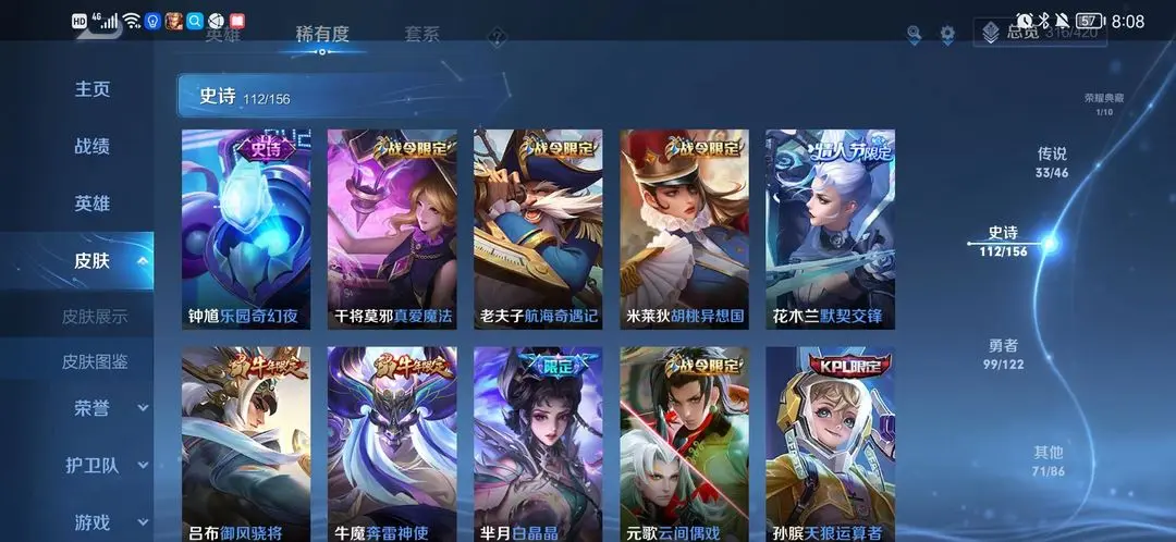 本游戏账号: V10用户,基础段位:至尊星耀IV,英雄多,皮肤多。典藏皮肤1个,感受典藏皮肤带来的优质体验快感,FMVP皮肤5个,尽情享受FMVP皮肤带来的主角光环, 私人所属英雄皮肤有:孙悟空 全息碎影铠 绛天战甲||孙尚香 末日机甲||宫本武藏 地狱之眼||狄仁杰 超时空战士||达摩 黄金狮子座||貂蝉 仲夏夜之梦||张良 黄金白羊座||孙悟空 地狱火||后羿 黄金射手座||李元芳 飞鸢探春,等等