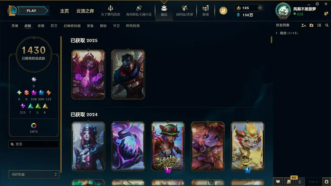 【比尔吉沃特】1430P推荐包天★元老会议国王龙龟各种稀有★至臻海克斯全★新皮不定期更新