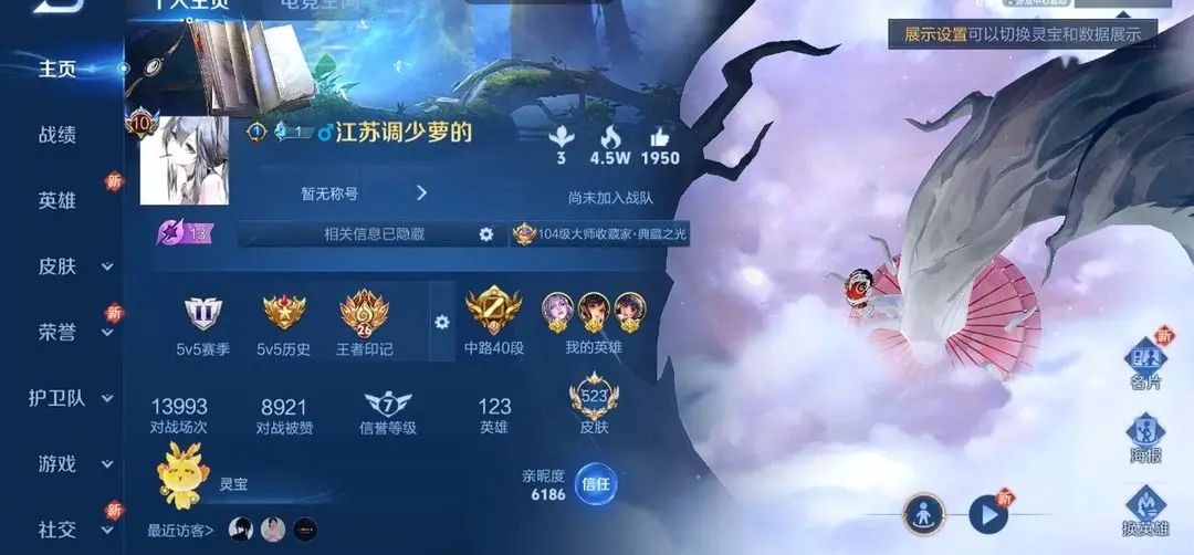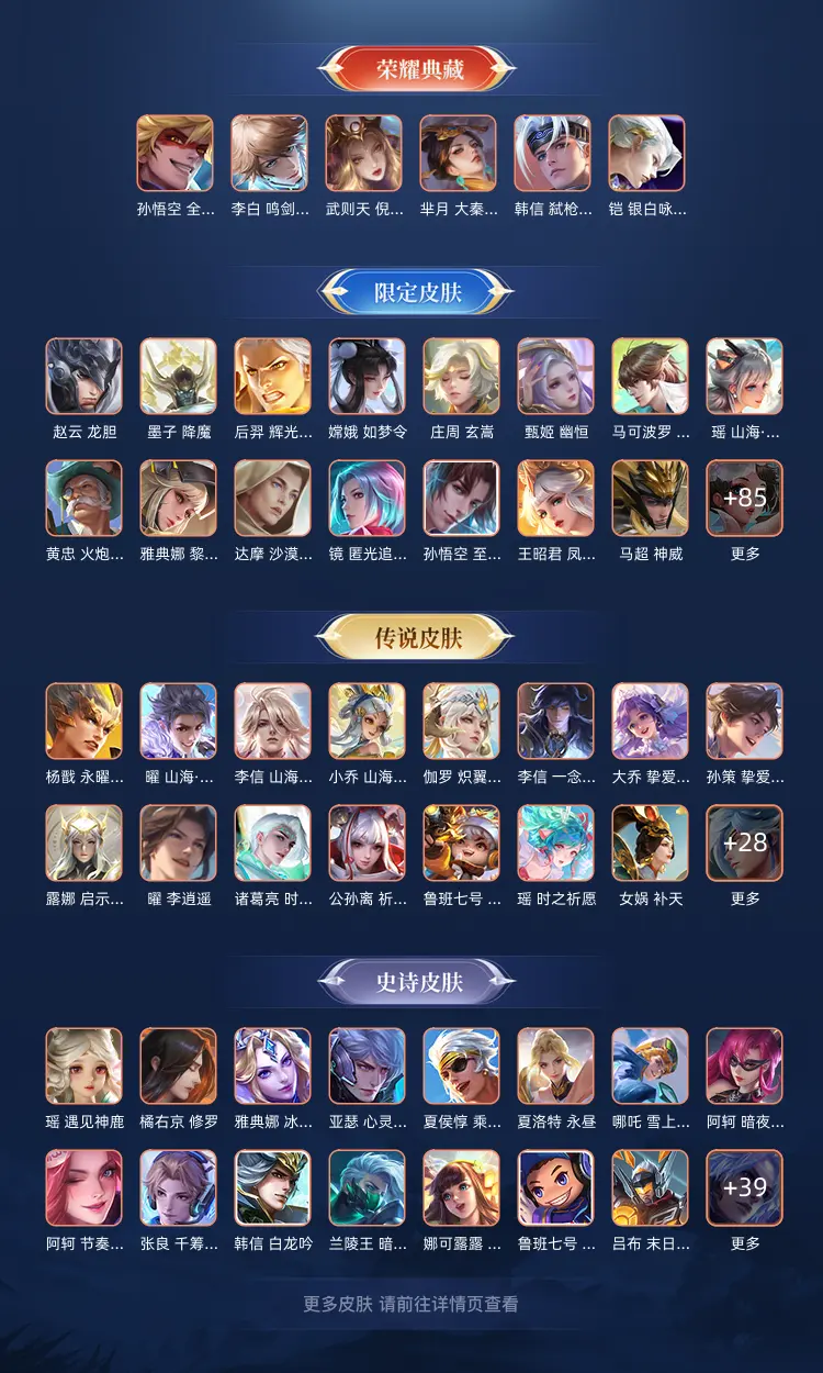 本游戏账号: V10用户,基础段位:永恒钻石IV,英雄多,皮肤多。典藏皮肤8个,感受典藏皮肤带来的优质体验快感,FMVP皮肤7个,尽情享受FMVP皮肤带来的主角光环, 私人所属英雄皮肤有:诸葛亮 星域神启||铠 银白咏叹调||鲁班七号 星空梦想||李白 鸣剑·曳影||武则天 倪克斯神谕||貂蝉 幻阙歌||孙悟空 全息碎影||小乔 天鹅之梦诸葛亮 时雨天司||诸葛亮 武陵仙君||大乔 挚爱花嫁||铠 绛天战甲||百里守约 碎云||孙尚香 音你闪耀||孙尚香 异界灵契||孙尚香 末日机甲||公孙离 记忆之芯||公孙离 祈雪灵祝||鲁班七号 寅虎·瑞焰||孙策 挚爱之约||孙策 末日机甲||上官婉儿 神器·万象笔||周瑜 音你心动||曜 山海·苍雷引||宫本武藏 地狱之眼||李白 凤求凰||李白 诗剑行||马可波罗 深海之息||狄仁杰 神器·狴犴令||狄仁杰 超时空战士||达摩 黄金狮子座||项羽 无限倾心||武则天 海洋之心||夏洛特 浮生妄||貂蝉 仲夏夜之梦||安琪拉 追逃游戏|