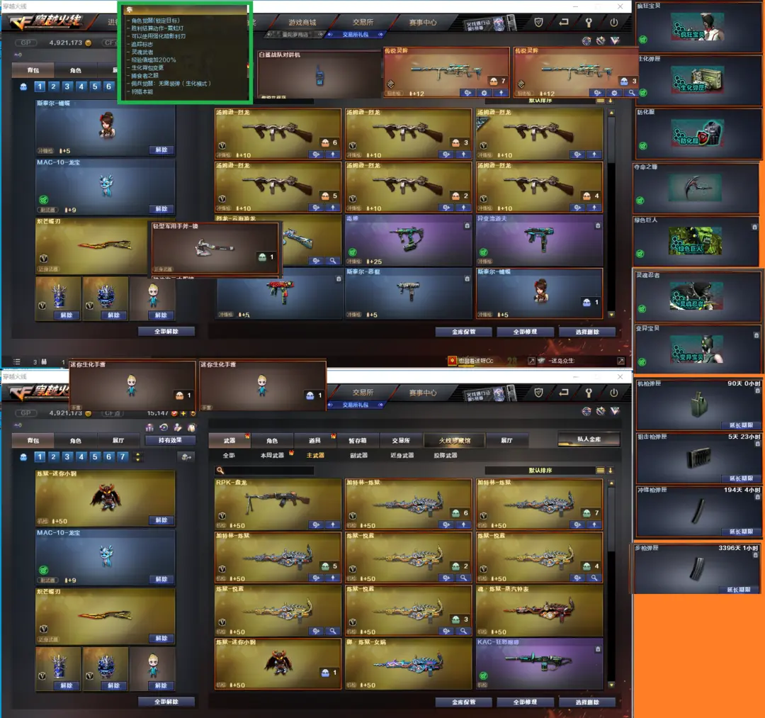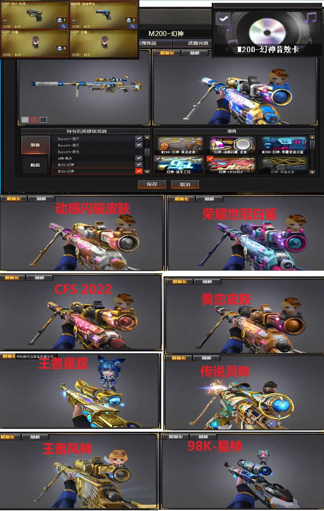 排位:可以-------------------生化四防全装(换背包、看血量):无需换弹、6烈1盘、6炼狱、炼狱小钢、KAC狂怒咆哮、毒蜂、斯太尔蝴蝶、异变清道夫、死亡之眼、MAC涂鸦、MAC龙宝、蝴蝶刀、手斧镜、2个生化手雷、超级对讲机、全部弹匣、、、、爆破全装:幻神2皮肤带音效(冠军之幻、荣耀世冠白鲨、CFS2022、动感闪耀、黄忠皮肤)、传说灵眸2把、98K星神、王者星霆、王者风神、M200-竞技荣光、、、COP幻灵、COP白鲨、柯尔特竞技荣光、、、、幻神音效、白虎音效、蔷薇音效、极光音效、毁灭音效、雷神音效、、、、4同安幻灵手雷、竞技荣光手雷、云龙手雷、、、爆破四防(传说艾丽莎、机械姬、王者潘多拉、灵狐者职业经理)、生化四防(隼、影豹、王者华冠丽服)