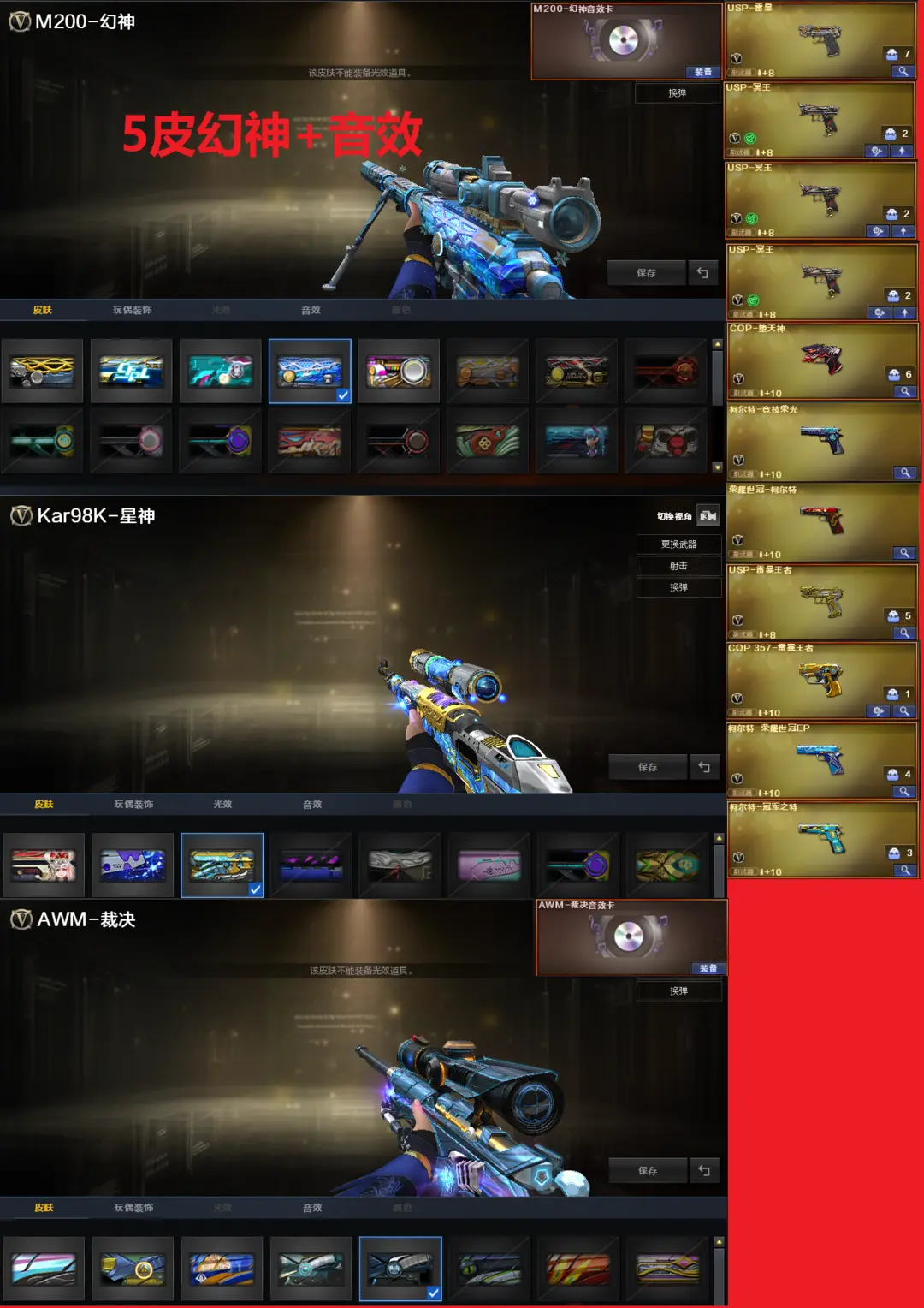 排位:可以----------------生化全装(可以变更背包、看僵尸血量):无需换弹、6烈、6盘 、斯泰尔蝴蝶、毒蜂、双面神、双面神、死亡之眼、MAC涂鸦、炽芒蝶刃、2个生化减速雷、超级对讲机、全部弹匣、、、、、、、爆破四防:幻神5皮+音效(EP荣耀、传奇欧欧、冠军之幻、周瑜、动感闪耀皮肤)、M200-竞技荣光、98K星神、、、、、USP雷暴、3个USP冥王、USP雷暴王者、COP堕天神、柯尔特竞技荣光、世冠柯尔特、COP雷霆王者、EP荣耀柯尔特、冠军之特、、、、G36幻影、传说浩劫、白虎、QBZ191-银翼、QBZ金色蔷薇、王者炎武、、、幻神音效、裁决音效、蔷薇音效、白虎音效、雷神音效、黑龙音效、、、1套雷霆、5套雷暴、1套堕天神、1套幻灵、1套竞技荣光、1套神工天巧、1套玄豹、1套雷霆王者、3套雷暴王者、、、生化四防(隼、礼物老人)、爆破四防(传说艾莉莎、传说星骇、云悠悠、华、荒漠琉璃、研、王者春、王者貂蝉、王者国色天香、王者魅影、王者华冠丽服、王者潘多拉)