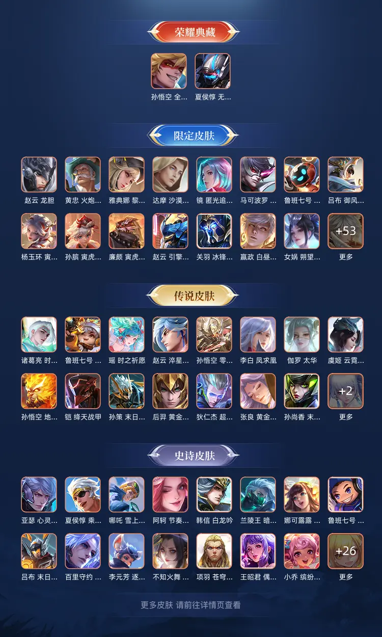 本游戏账号: V10用户,基础段位:至尊星耀V,英雄多,皮肤多。典藏皮肤2个,感受典藏皮肤带来的优质体验快感,FMVP皮肤1个,尽情享受FMVP皮肤带来的主角光环, 私人所属英雄皮肤有:夏侯惇 无限飓风号||孙悟空 全息碎影铠 绛天战甲||孙尚香 末日机甲||孙策 末日机甲||狄仁杰 超时空战士||张良 黄金白羊座||孙悟空 地狱火||后羿 黄金射手座,等等