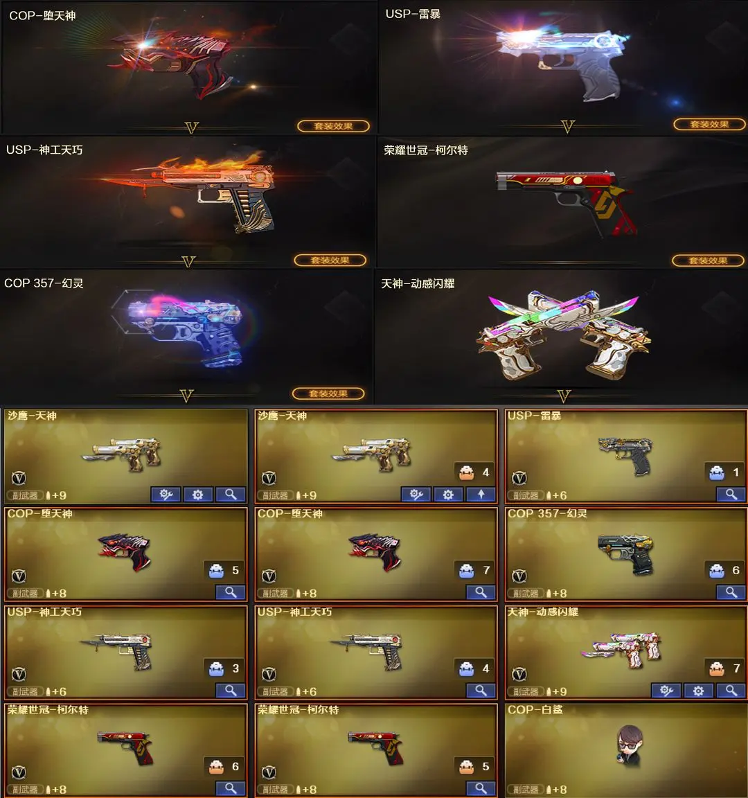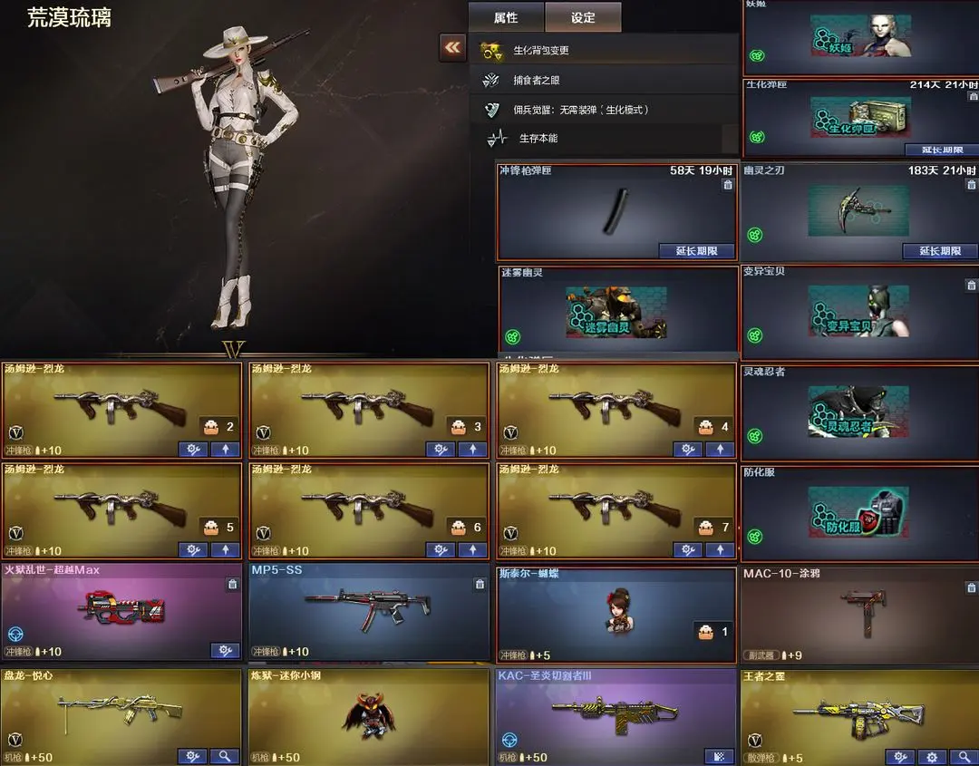 【装备道具】:荣耀世冠白鲨幻神皮肤★幻神音效卡★丹凤幻神皮肤★传说艾莉莎★传说夜影★传说辉光★炽芒蝶刃★白虎之魄★白虎冠军AG皮肤★AG冠军QBZ皮肤★qbz王者蔷薇★98K星神★星神漫游皮肤★8音效卡★幻神音效卡★白虎音效卡★雷神音效卡★毁灭音效卡★黑骑士音效卡★极光音效卡★裁决音效卡★黑龙冠军之武★雷神杨戬★雷神星空★黑骑士-冠军之势★毁灭冠军之怒★火麒麟大唐荣光★qbz枪娘阿敏★白虎大汉风骨★毁灭直播专属★耀金黑骑士★毁灭耀金皮肤★觉醒王者之烈★荣耀世冠雷神★觉醒王者炎心★觉醒王者火魄★王者之势王者之武★USP雷暴★COP堕天神★COP幻灵★USP神工天巧★天神动感闪耀★荣耀世冠柯尔特★COP白鲨★迷迭香★荒漠琉璃★王者春★王者貂蝉★月兔特工★王者葵★王者之霆★盘龙悦心★MAC-10-涂鸦★火狱乱世-超越MAX★6烈龙★斯泰尔蝴蝶★炼狱迷你小钢★荣耀之证卡牌★变异宝贝死亡对讲机不退包★佣兵觉醒无需换弹手斧镜减速雷★捕食者之眼查看血量★