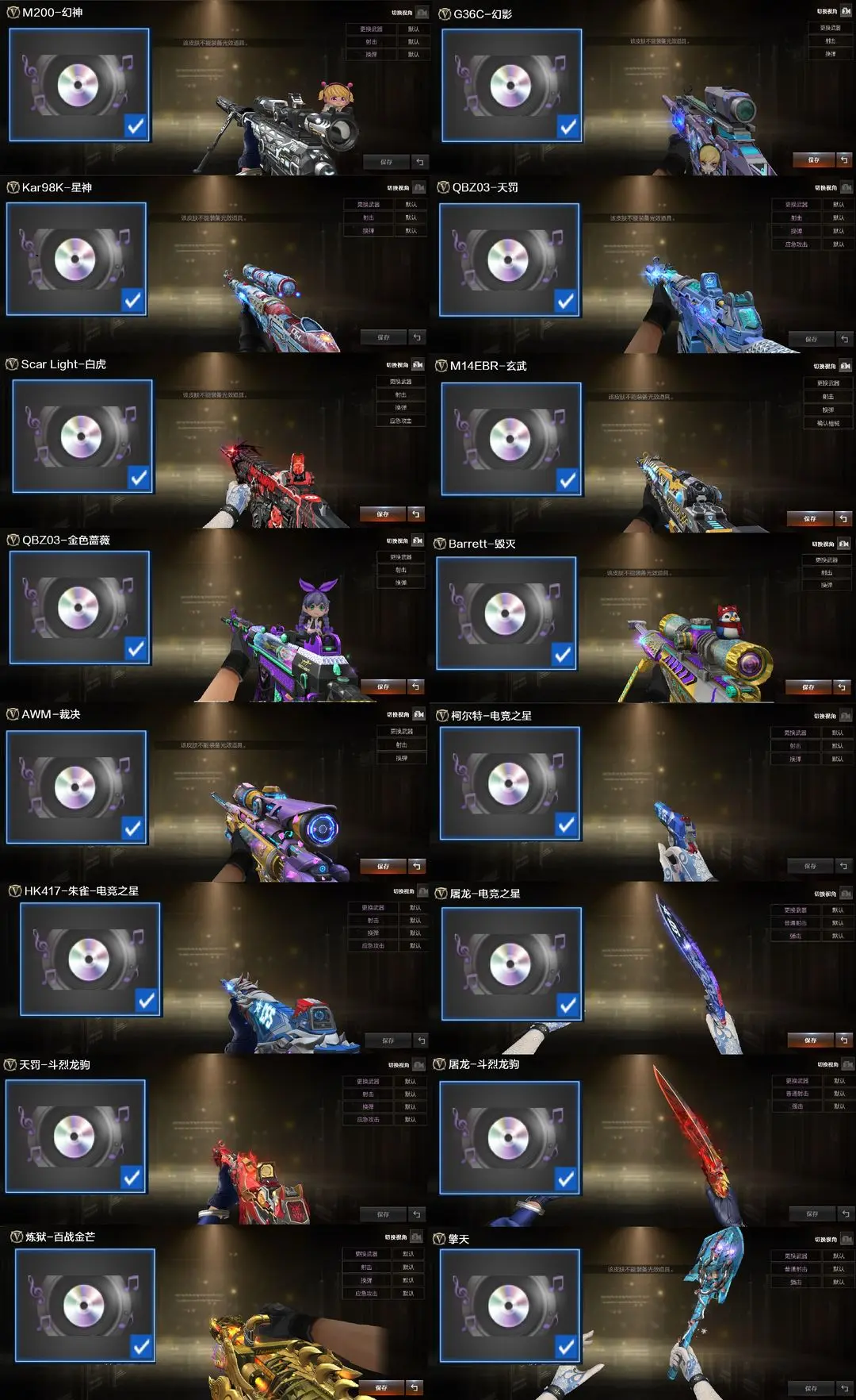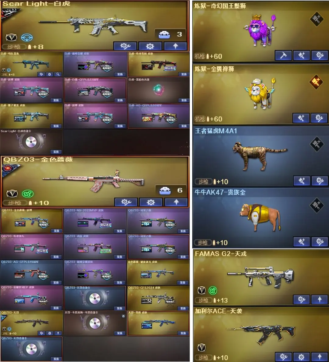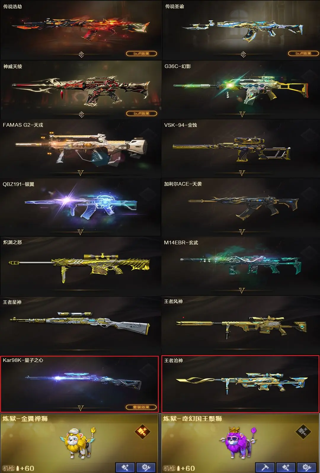 【装备道具】神威莲华/传说浩劫/传说圣谕/神威天绫/传说艾莉莎/传说星骇/★幻神-周瑜/幻神-权/幻神-宠儿-2021MVP/幻神-巅峰荣耀/幻神-CFS2022/幻神-冠军之幻/幻神-YZK/幻神-KZ冠军/幻神-荣耀世冠EP/幻神-AG-S17冠军/幻神-丹凤/幻神-AG-CFPLS24冠军/幻神-传奇欧欧/幻神-荣耀世冠白鲨2023/星神-巅峰荣耀/星神-斗虎/星神-黯钢战甲/星神-拼搏/星神-CFS2025/冠军之星/星神-璀璨/裁决-永恒紫罗兰/裁决-巅峰荣耀/幻影-破浪逐光/幻影-量子聚变/幻影-缪斯音盒/巅峰荣耀白虎-传奇常旭/白虎-拼搏/白虎-量子聚变/AG冠军白虎-白鲨冠军/QBZ-N9-2023MVP/QBZ-冠军之薇/QBZ-虎鱼/QBZ03-巅峰荣耀/QBZ03-CFS2024/QBZ-荣耀世冠EP/QBZ拼搏/炽芒蝶刃-宋雨琦/炽芒蝶刃-巅峰荣耀/天罚-常胜/玄武-幻灵装甲/裁决-量子聚变/裁决-过载/FAMASG2-天戎/王者沧神/加利尔ACE-天袭★8把王者堕天神/冥王/王者雷暴★晴雅/玄豹/隐/研/妮妮/智/炼狱-奇幻国王鬃狮/炼狱-金翼禅狮/王者猛虎