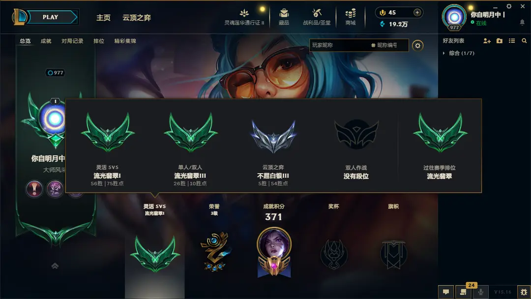 | 角色: 你自明月中丨#35711 | 等级: 1089级 流光翡翠III |