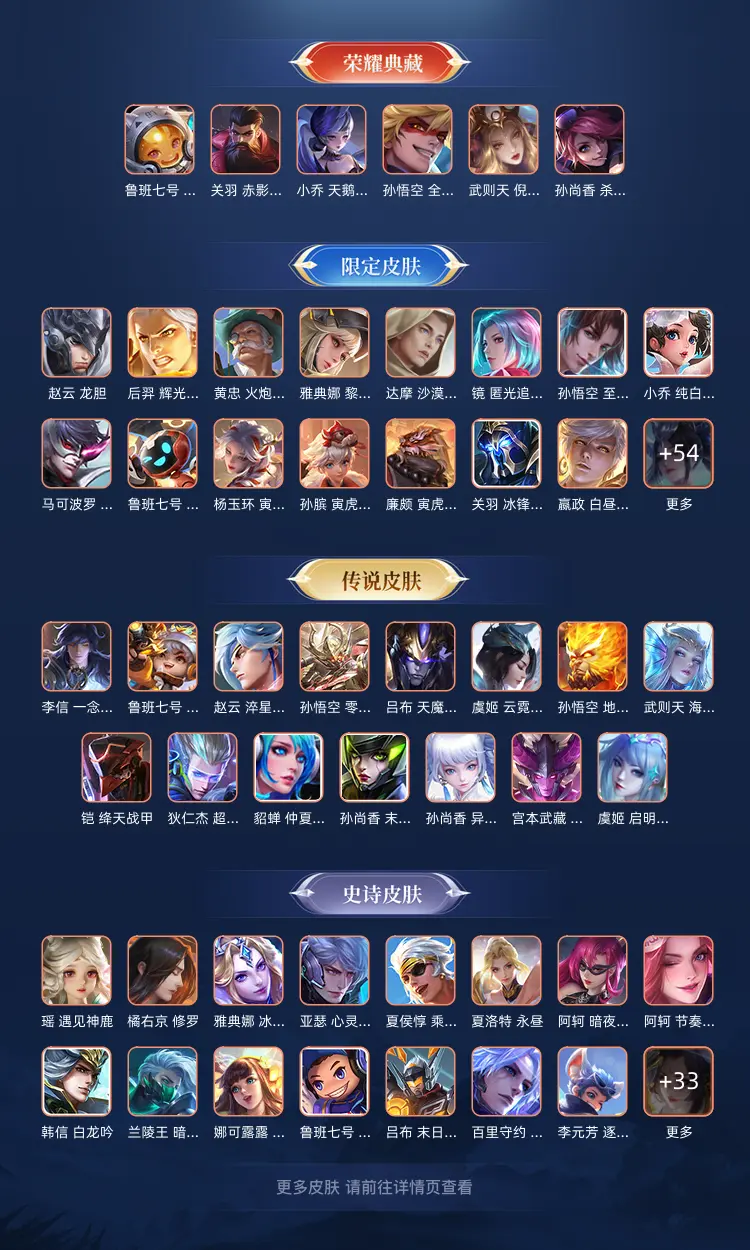 本游戏账号: V10用户,基础段位:至尊星耀III,英雄多,皮肤多。典藏皮肤5个,感受典藏皮肤带来的优质体验快感,FMVP皮肤2个,尽情享受FMVP皮肤带来的主角光环, 私人所属英雄皮肤有:孙尚香 杀手不太冷||鲁班七号 星空梦想||武则天 倪克斯神谕||孙悟空 全息碎影||小乔 天鹅之梦铠 绛天战甲||孙尚香 末日机甲||宫本武藏 地狱之眼||狄仁杰 超时空战士||武则天 海洋之心||貂蝉 仲夏夜之梦||王昭君 乞巧织情||孙悟空 地狱火,等等