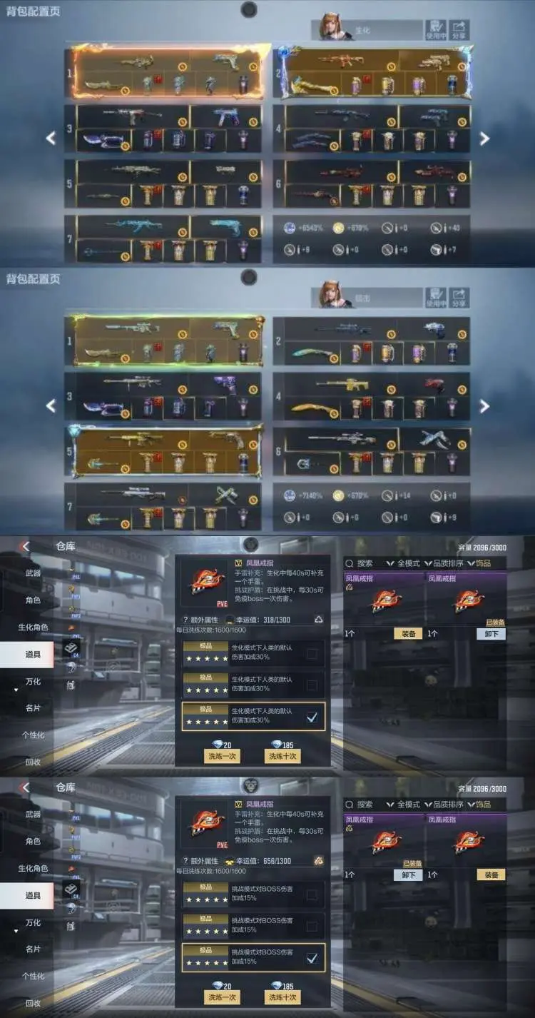 ♥生化:王狱至尊+6机枪+死神匕首,王戮至尊,炼狱怒魔套装,死神套装变色龙套装,波塞冬套装,雷暴套装,雷霆m4+雷霆冲锋枪等