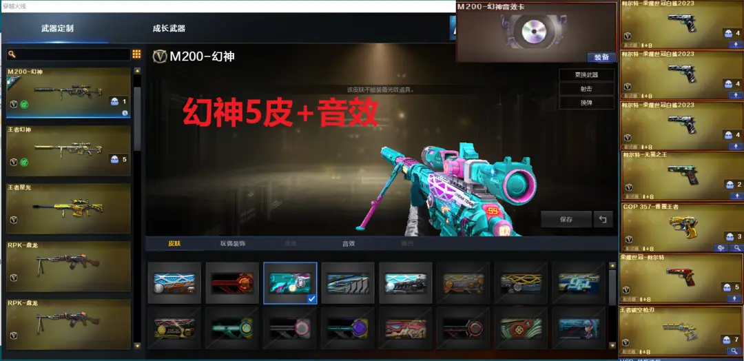 排位:可以、、、、、、、、、、、、爆破四防:幻神5皮+音效(23白鲨、传奇欧欧、星火小队、丹凤、电流骇客皮肤)、王者幻神、、、、3个23白鲨柯尔特、无冕之王、世冠柯尔特、COP雷霆王者、、、、、G36幻影、王者白虎、QBZ金色蔷薇、马枪、、、幻神音效、毁灭音效、、、1套雷暴、1套竞技荣光、5套雷霆王者、、、爆破四防(云悠悠、关小雨、曼珠沙华、岚兮儿、王者晴雅、王者沙漠玫瑰、零-热舞青春)