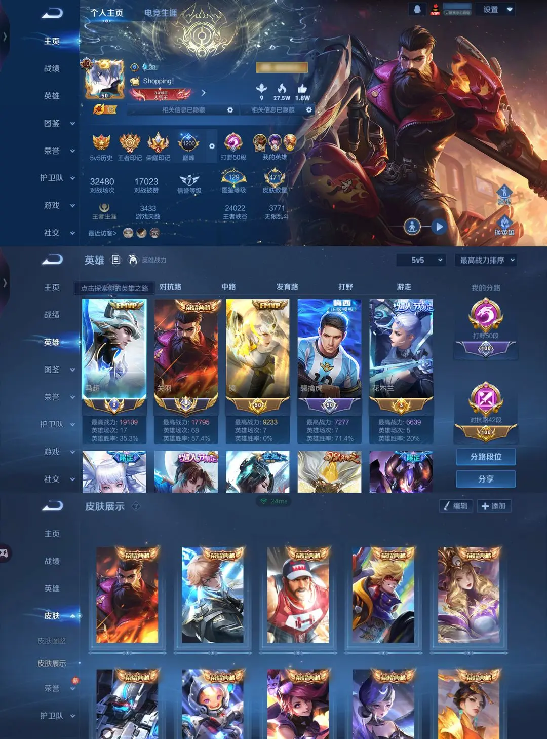 10典藏赤影疾锋历史国服关羽1.7W战力马超1.9W❤打野50段全能大师❤小兵狐妖小红娘天幕