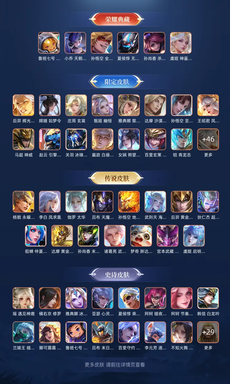 本游戏账号: V10用户,基础段位:至尊星耀IV,英雄多,皮肤多。典藏皮肤5个,感受典藏皮肤带来的优质体验快感,FMVP皮肤1个,尽情享受FMVP皮肤带来的主角光环, 私人所属英雄皮肤有:孙尚香 杀手不太冷||鲁班七号 星空梦想||夏侯惇 无限飓风号||孙悟空 全息碎影||小乔 天鹅之梦孙尚香 末日机甲||宫本武藏 地狱之眼||狄仁杰 超时空战士||达摩 黄金狮子座||武则天 海洋之心||貂蝉 仲夏夜之梦||孙悟空 地狱火||后羿 黄金射手座,等等