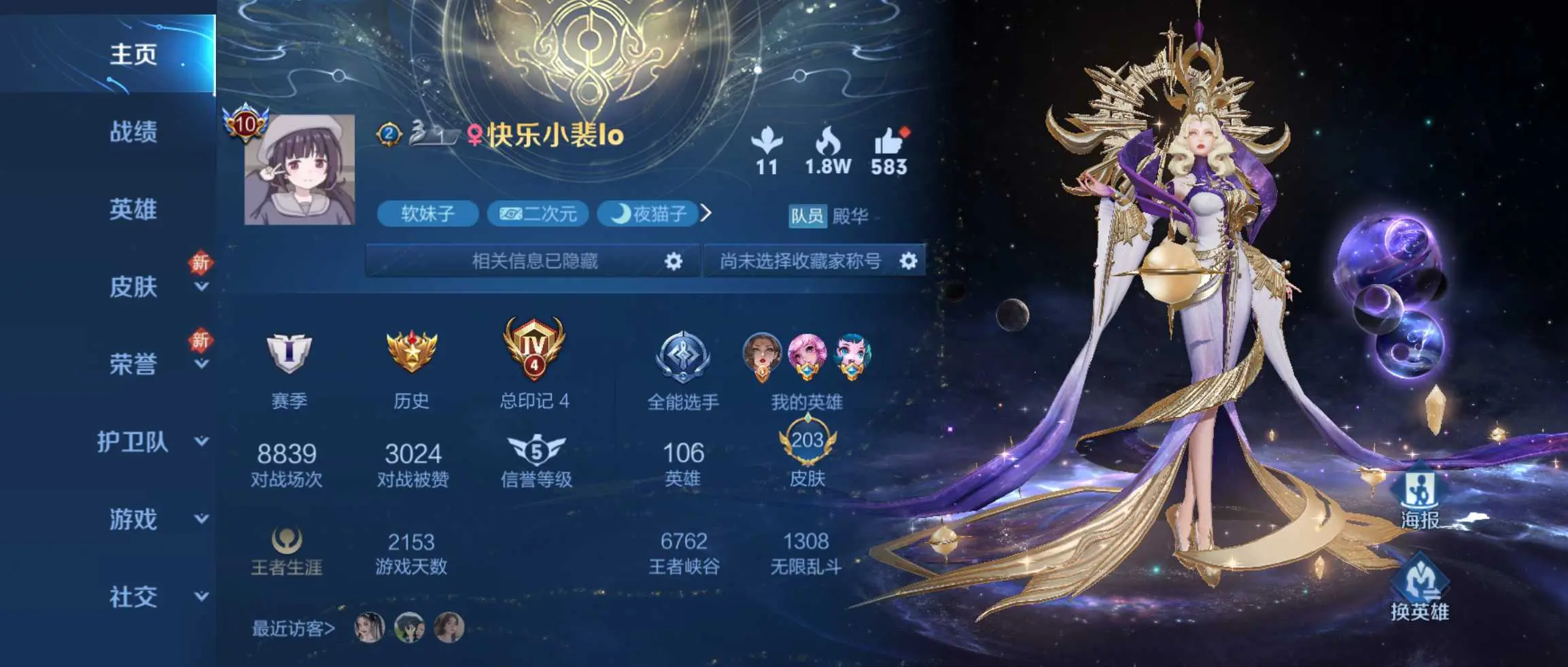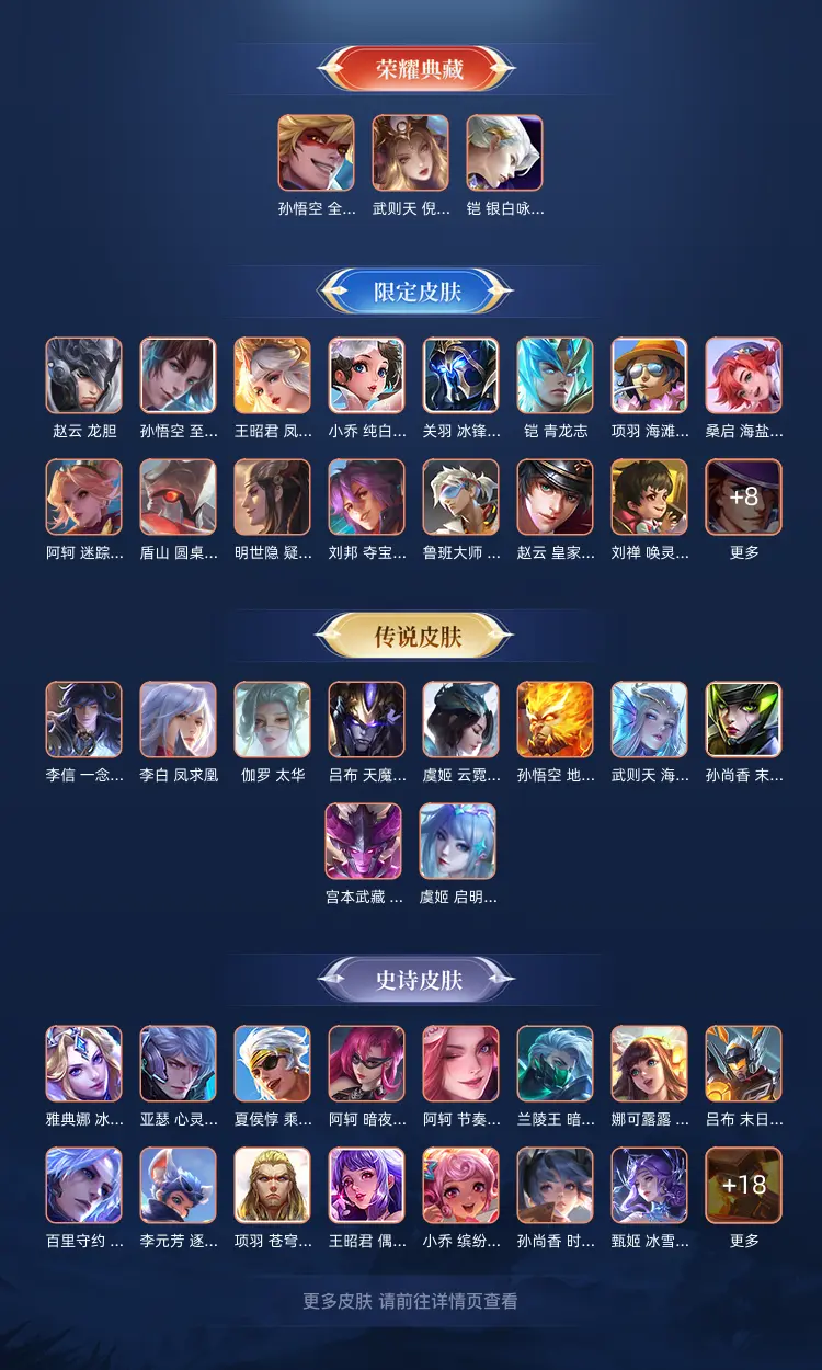 本游戏账号: V10用户,英雄多,皮肤多。典藏皮肤2个,感受典藏皮肤带来的优质体验快感, 私人所属英雄皮肤有:武则天 倪克斯神谕||孙悟空 全息碎影孙尚香 末日机甲||武则天 海洋之心||孙悟空 地狱火铠 青龙志||吕布 天魔缭乱||李白 凤求凰||关羽 冰锋战神||王昭君 凤凰于飞||孙悟空 至尊宝||虞姬 云霓雀翎||小乔 纯白花嫁||赵云 龙胆||李信 一念神魔||伽罗 太华,等等