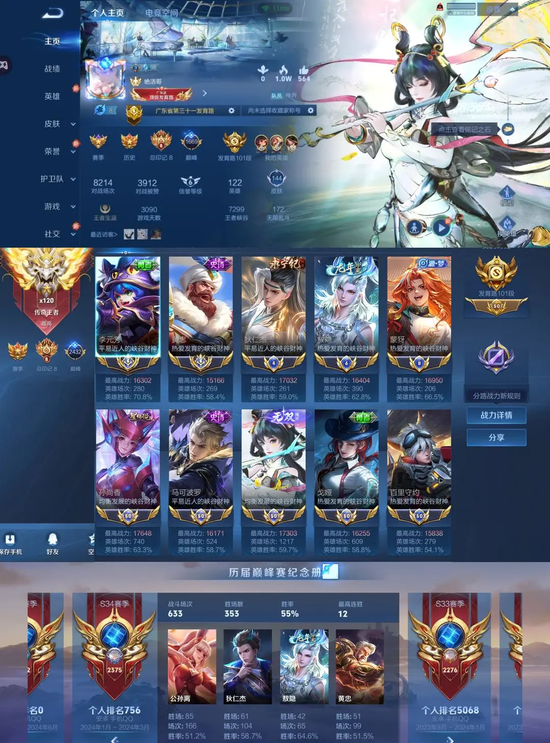 禁榜❤在榜省级发育路101段百段发育路❤2历史国服黄忠李元芳❤离恨烟❤7历史小国标顶射