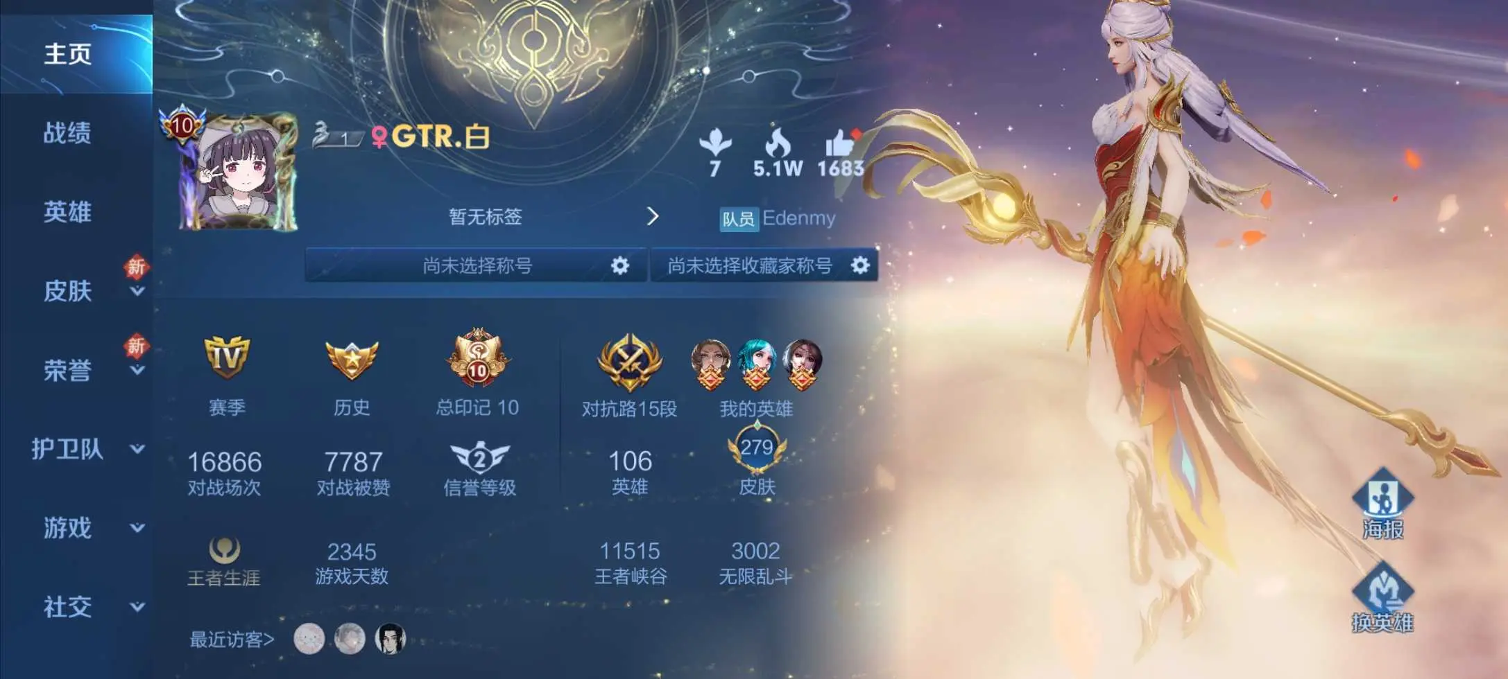 本游戏账号: V10用户,基础段位:至尊星耀IV,英雄多,皮肤多。典藏皮肤3个,感受典藏皮肤带来的优质体验快感,FMVP皮肤3个,尽情享受FMVP皮肤带来的主角光环, 私人所属英雄皮肤有:孙尚香 杀手不太冷||鲁班七号 星空梦想||孙悟空 全息碎影孙尚香 末日机甲||达摩 黄金狮子座||武则天 海洋之心||貂蝉 仲夏夜之梦||张良 黄金白羊座||孙悟空 地狱火||后羿 黄金射手座,等等