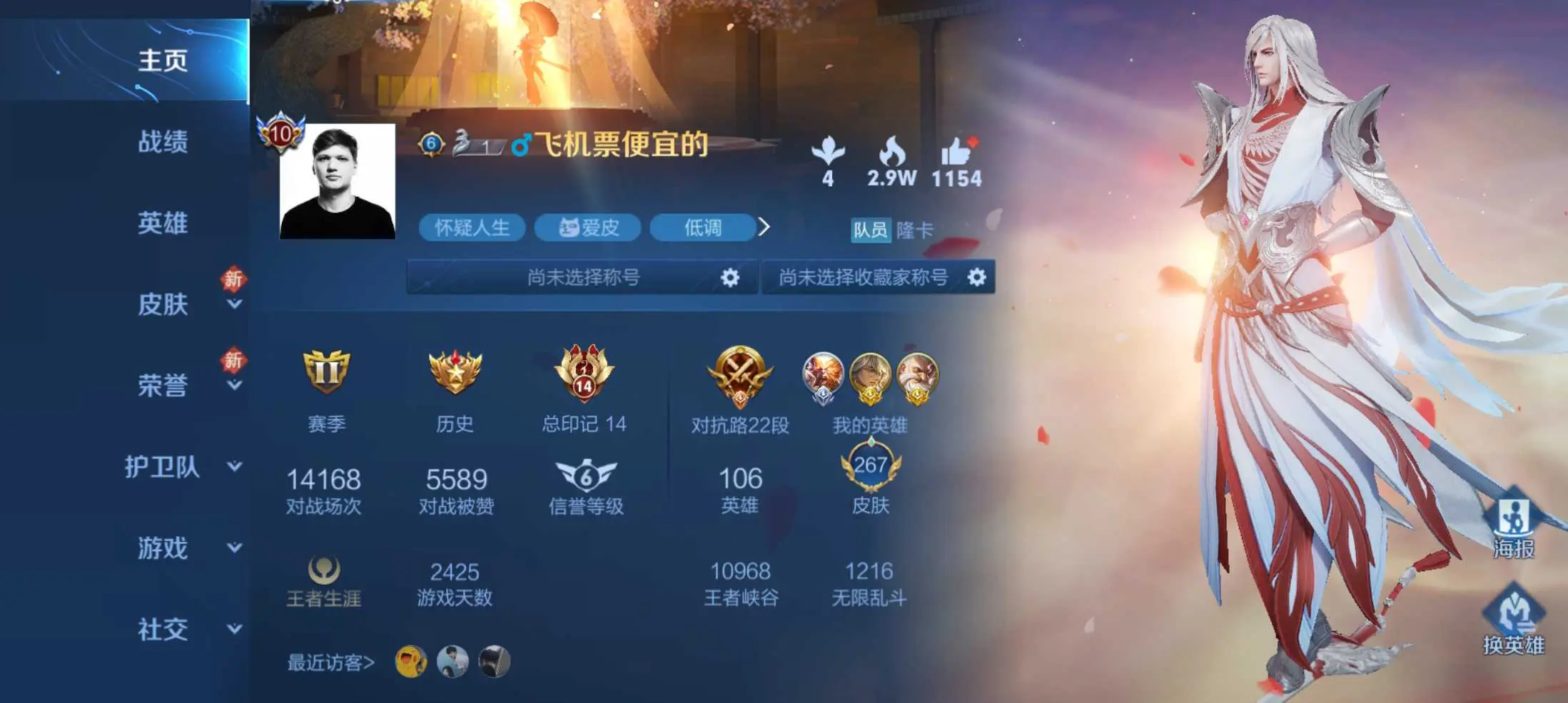 本游戏账号: V10用户,基础段位:永恒钻石III,英雄多,皮肤多。典藏皮肤7个,感受典藏皮肤带来的优质体验快感,FMVP皮肤1个,尽情享受FMVP皮肤带来的主角光环, 私人所属英雄皮肤有:孙尚香 杀手不太冷||鲁班七号 星空梦想||芈月 大秦宣太后||夏侯惇 无限飓风号||武则天 倪克斯神谕||程咬金 活力突击||孙悟空 全息碎影诸葛亮 武陵仙君||梦奇 胖达荣荣||孙尚香 末日机甲||吕布 天魔缭乱||宫本武藏 地狱之眼||李白 凤求凰||狄仁杰 超时空战士||武则天 海洋之心||关羽 武圣||貂蝉 仲夏夜之梦||艾琳 觅芳踪||孙悟空 地狱火||后羿 黄金射手座||虞姬 启明星使||杨戬 永曜之星,等等