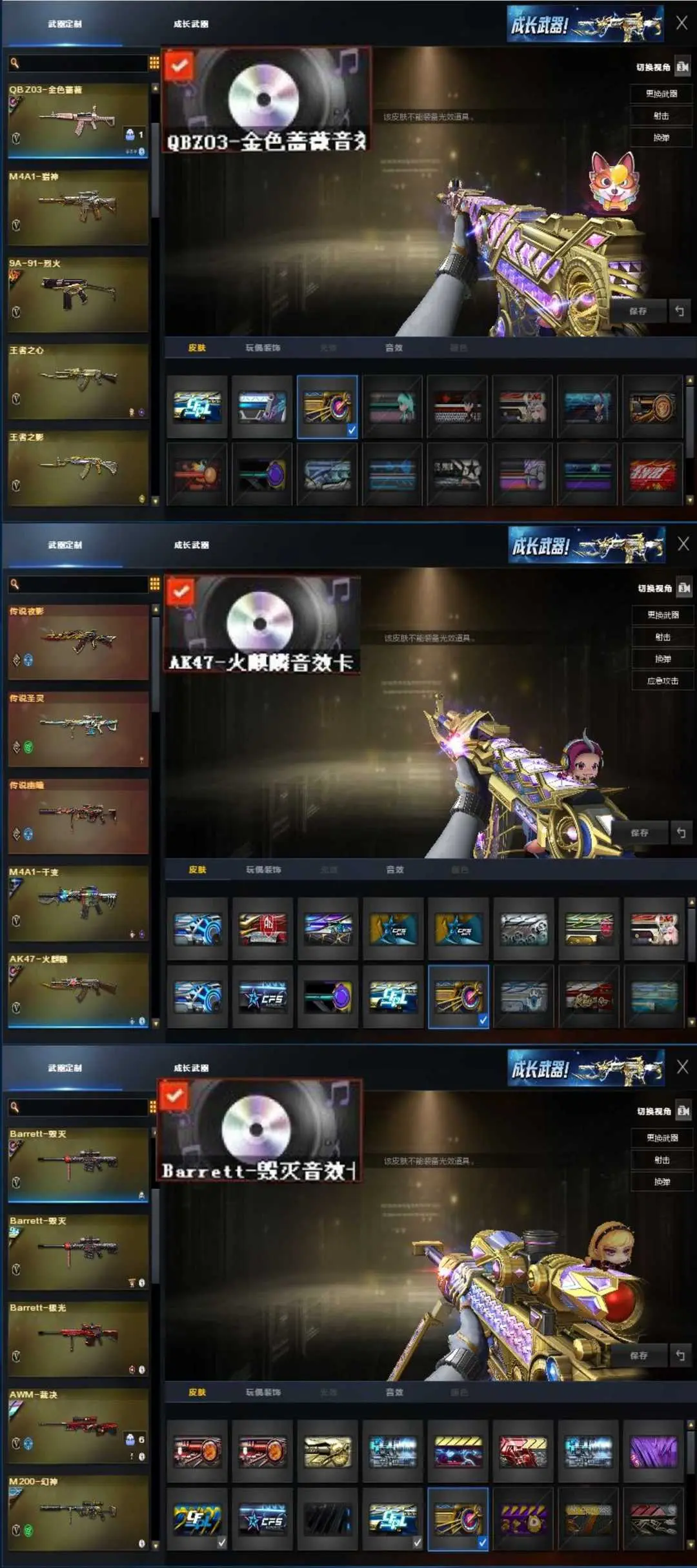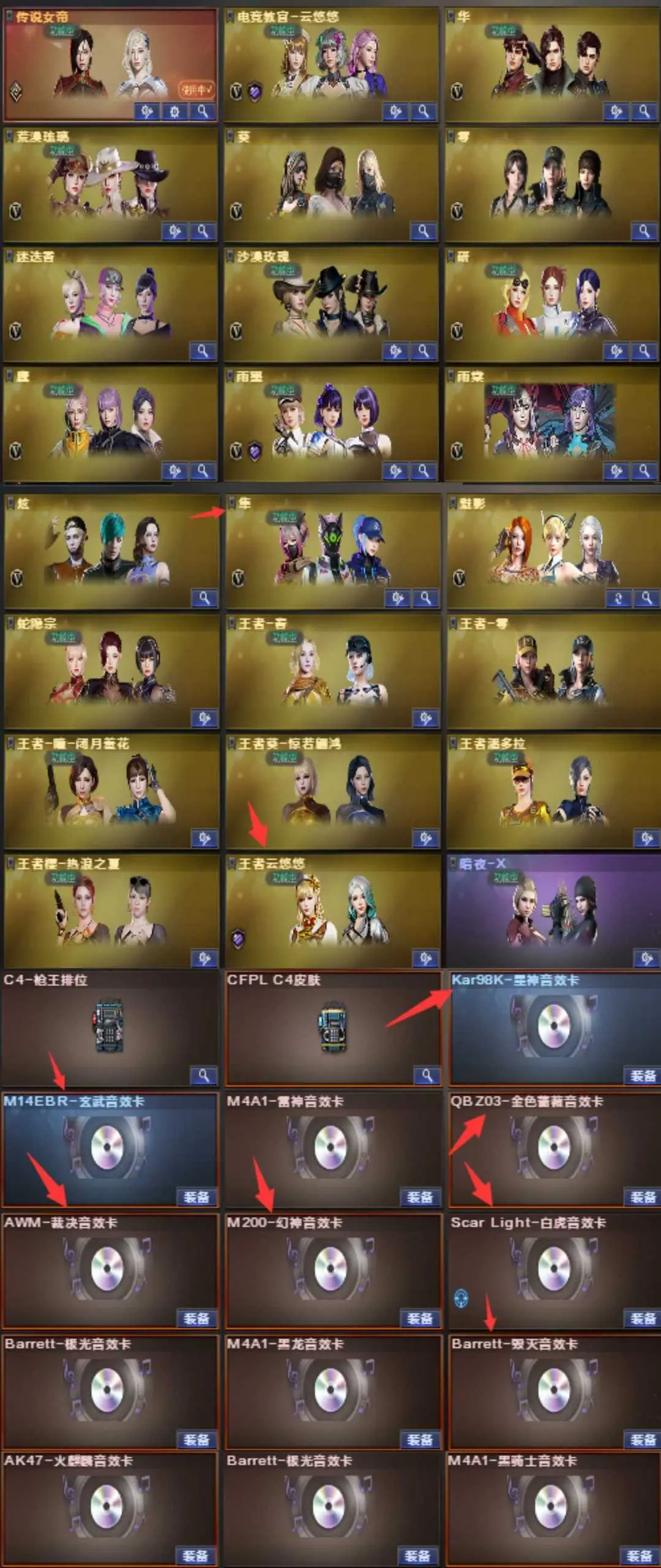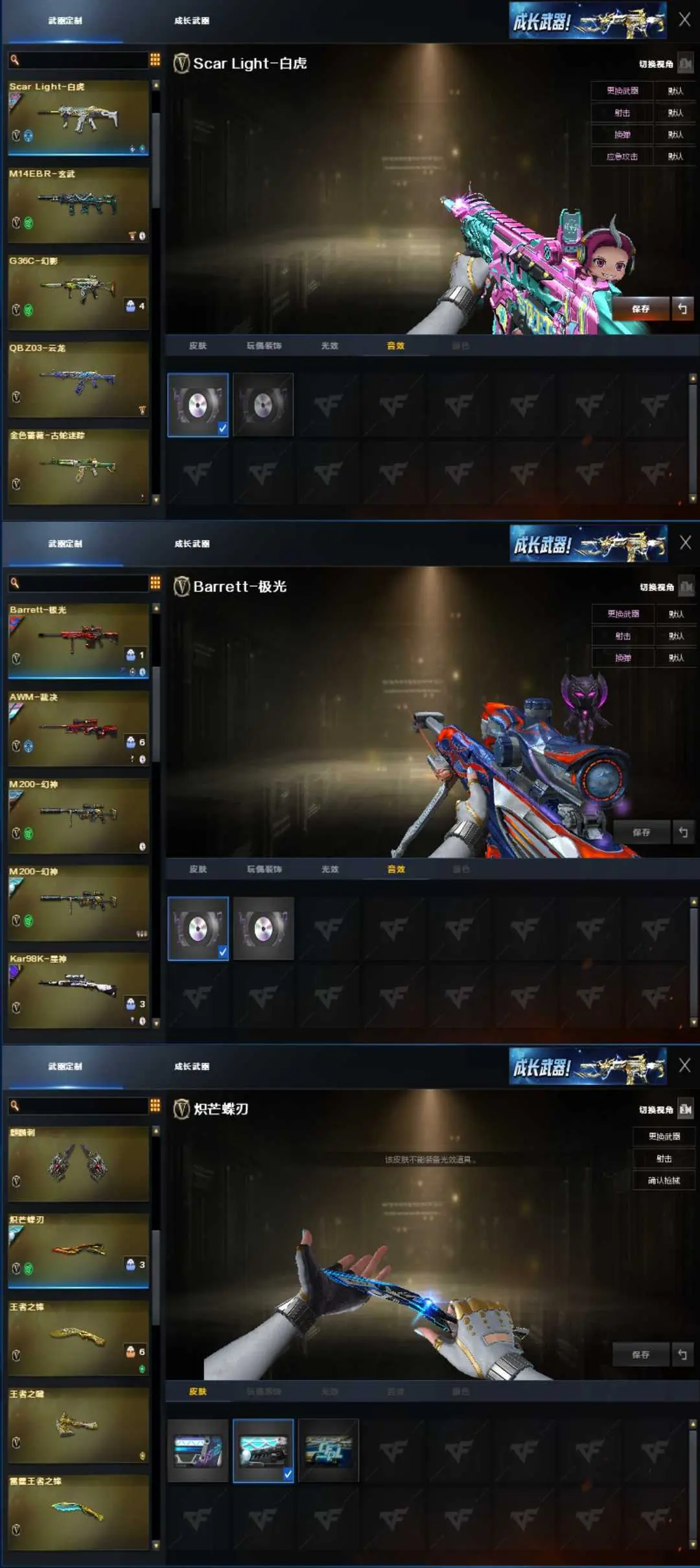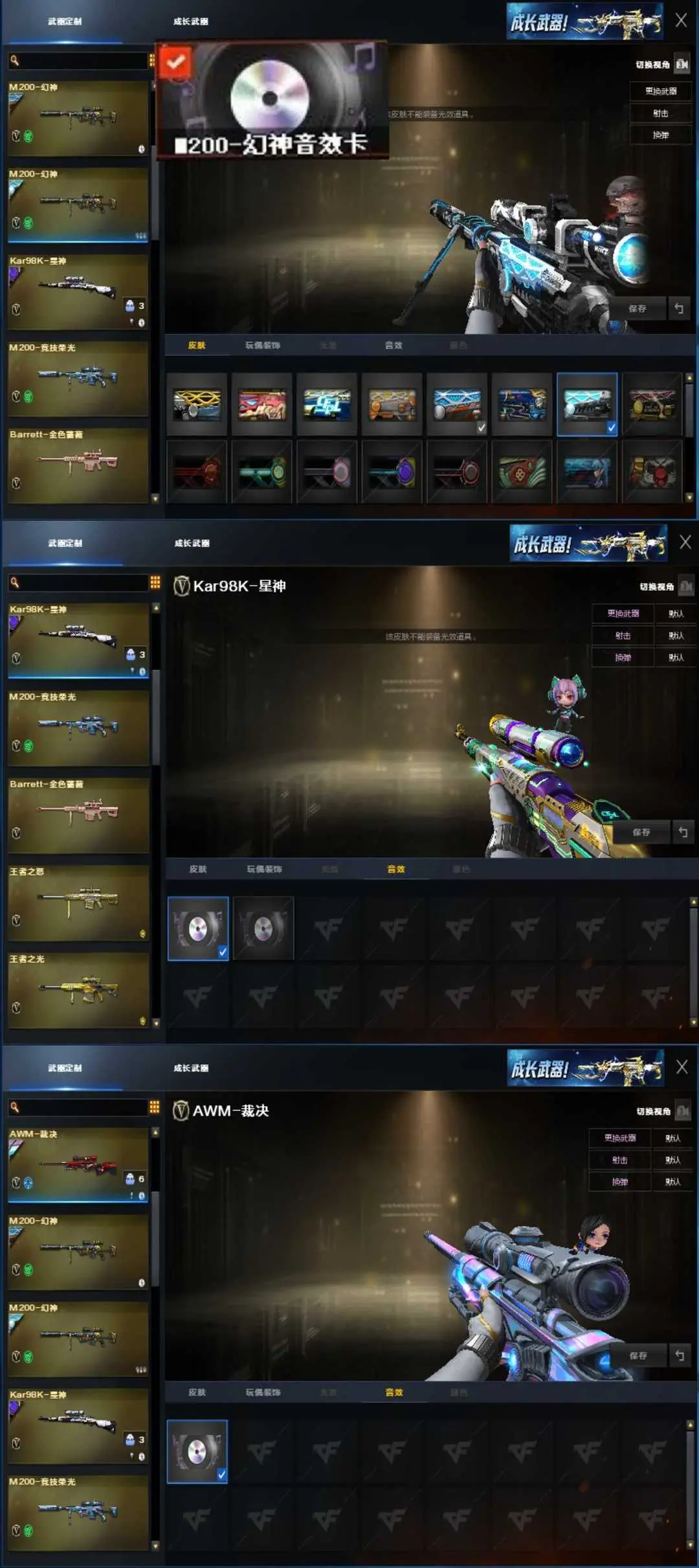 枪王1♥女帝幽瞳新白鲨白虎全套破空银翼G36♥裁决流光音效卡星火双幻神⑧皮满音效卡♥手枪满配