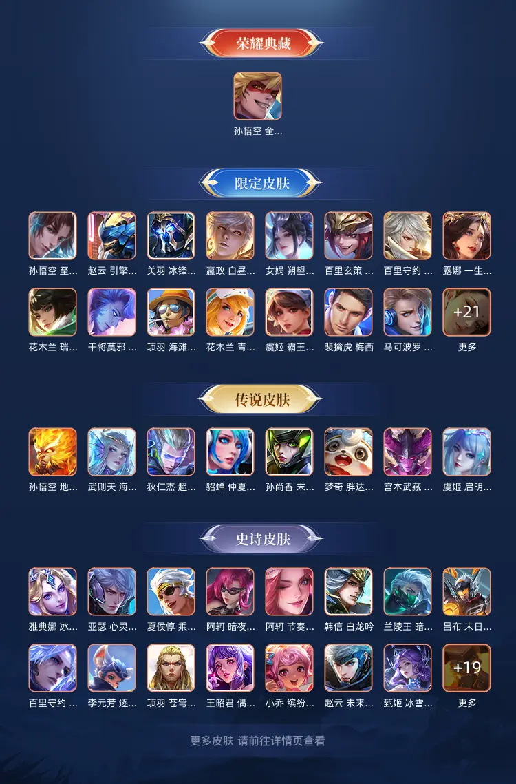 本游戏账号: V10用户,基础段位:至尊星耀V,英雄多,皮肤多。典藏皮肤1个,感受典藏皮肤带来的优质体验快感,FMVP皮肤1个,尽情享受FMVP皮肤带来的主角光环, 私人所属英雄皮肤有:孙悟空 全息碎影梦奇 胖达荣荣||孙尚香 末日机甲||宫本武藏 地狱之眼||狄仁杰 超时空战士||武则天 海洋之心||貂蝉 仲夏夜之梦||艾琳 觅芳踪||孙悟空 地狱火||虞姬 启明星使,等等