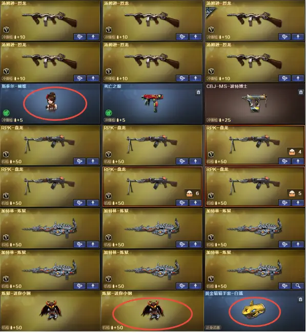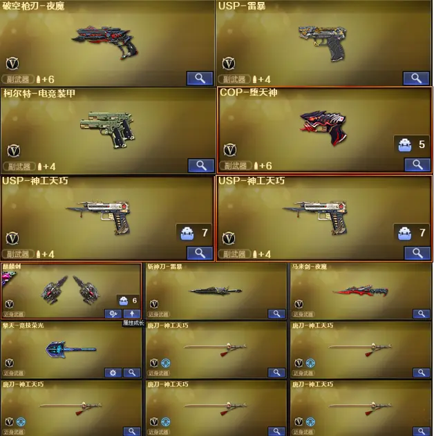 优质装备:高爆手雷-竞技荣光;白虎-电玩蓝兔;黑武士-锦绣游龙;迷你泡泡象;沙鹰-天神;传说破晓;Barrett-毁灭;无影-神兵利器;AK47-火麒麟;AK47-无影;M4A1-雷神;加特林-炼狱;AWM-裁决;屠龙;M200-幻神;AN94-超新星;QBZ03-金色蔷薇;AK47-B-战神;M4A1-黑骑士;麒麟刺;AK47-B-战士;AK-47-猩红传说;M4A1-龙血;9A91-烈火;AK12-天启;汤姆逊-烈龙;擎天-竞技荣光;闪光弹-竞技荣光;Glock18-武圣;云龙扇;M4A1-武圣;M4A1-玫瑰精灵