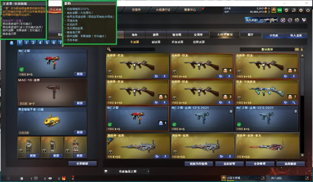 排位:可以--------------生化四防(可以变更背包、查看生化僵尸血量):无需换弹6烈、盘龙、炼狱、死亡之眼、MAC涂鸦、黄金猫猫手套、生化雷、、、、、、、、爆破四防:幻神3皮肤+音效(宠儿、冠军之幻、纸灯笼皮肤)、王者星神、传说幽瞳、传说幽冥、2个COP幻灵、2个USP神工天巧、冠军之特、白虎、QBZ天罚、玄武、白虎之魄、王者芳薇、、、、幻神音效、蔷薇音效、黑龙音效、白虎音效、朱雀音效、天神音效、屠龙音效、、、1套雷霆、1套电竞装甲、7套幻灵、7套神工天巧、、、、生化四防(影豹、王者华冠服)爆破四防(传说艾莉莎、王者潘多拉、鹰)