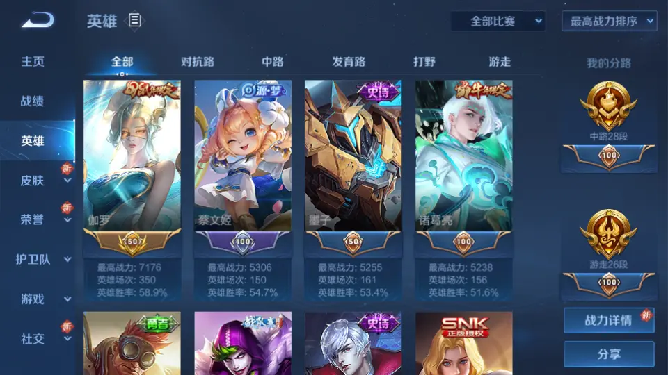 本游戏账号: V10用户,基础段位:至尊星耀IV,英雄多,皮肤多。典藏皮肤2个,感受典藏皮肤带来的优质体验快感,FMVP皮肤1个,尽情享受FMVP皮肤带来的主角光环, 私人所属英雄皮肤有:李白 鸣剑·曳影||小乔 天鹅之梦孙尚香 末日机甲||马可波罗 深海之息||狄仁杰 超时空战士||达摩 黄金狮子座||孙悟空 地狱火||后羿 黄金射手座镜 炽阳神光,等等
