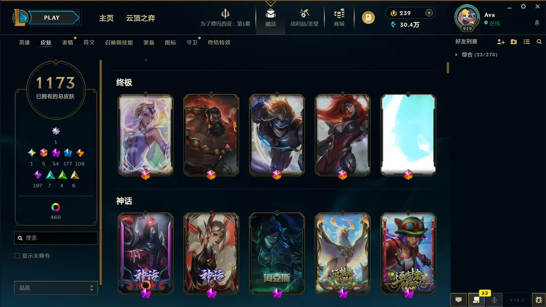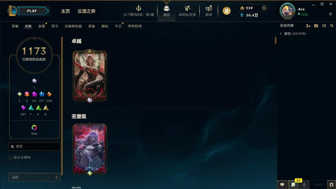 | 角色: Ava#82065 | 等级: 953级 华贵铂金III |