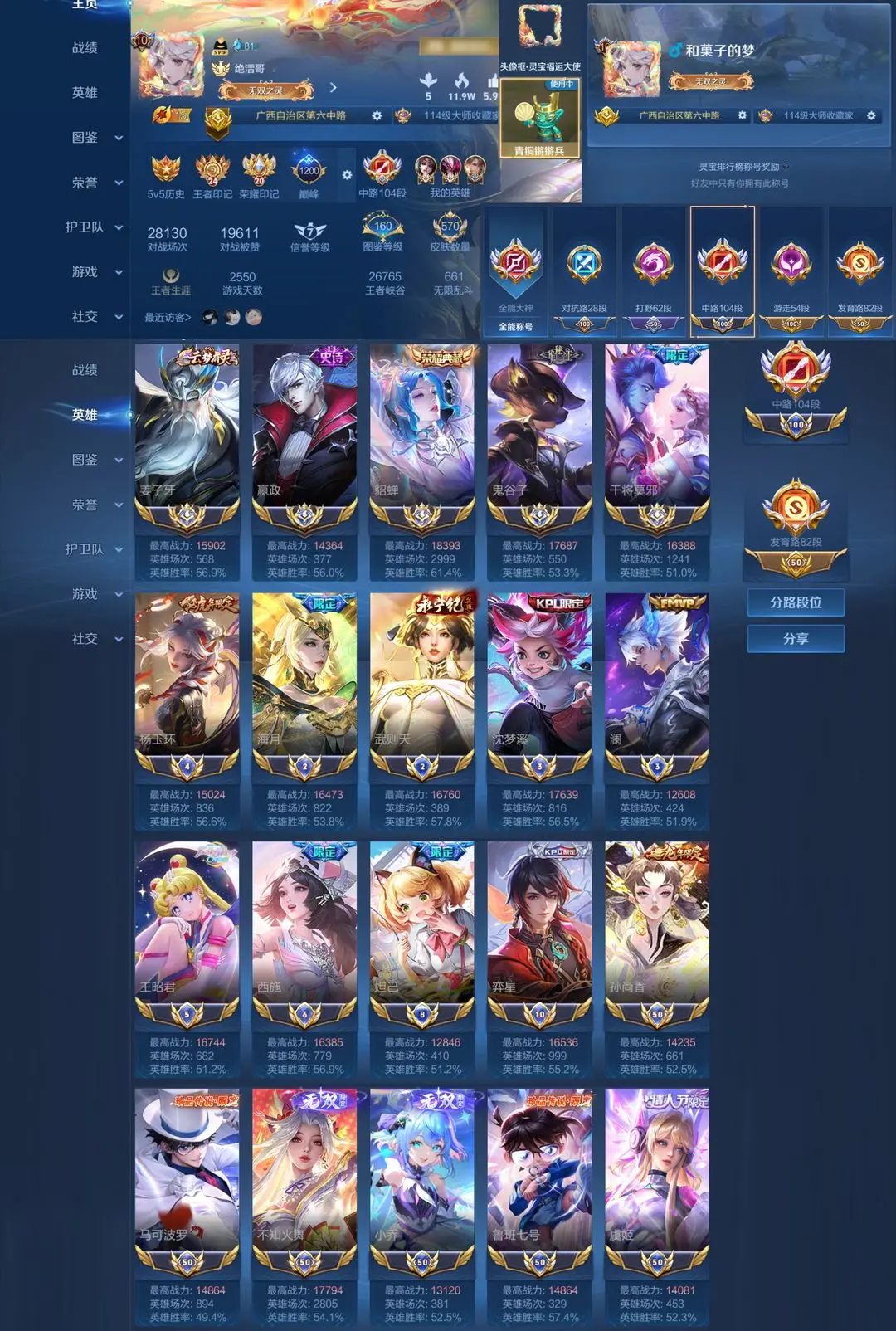 在榜省级百段中路❤9大历史国服貂蝉1.8W战力❤法王国服中路发育路82段47按键
