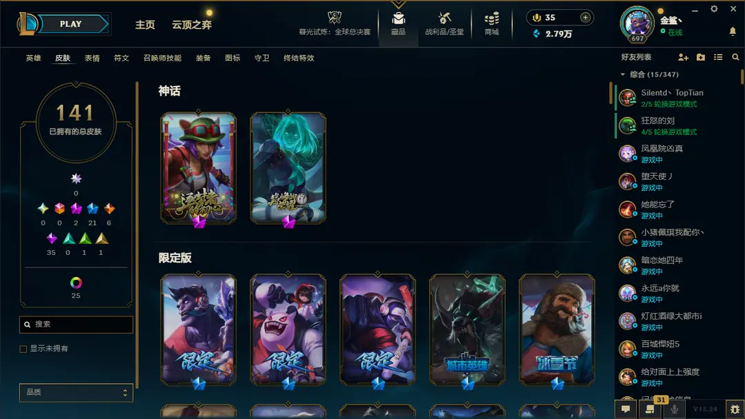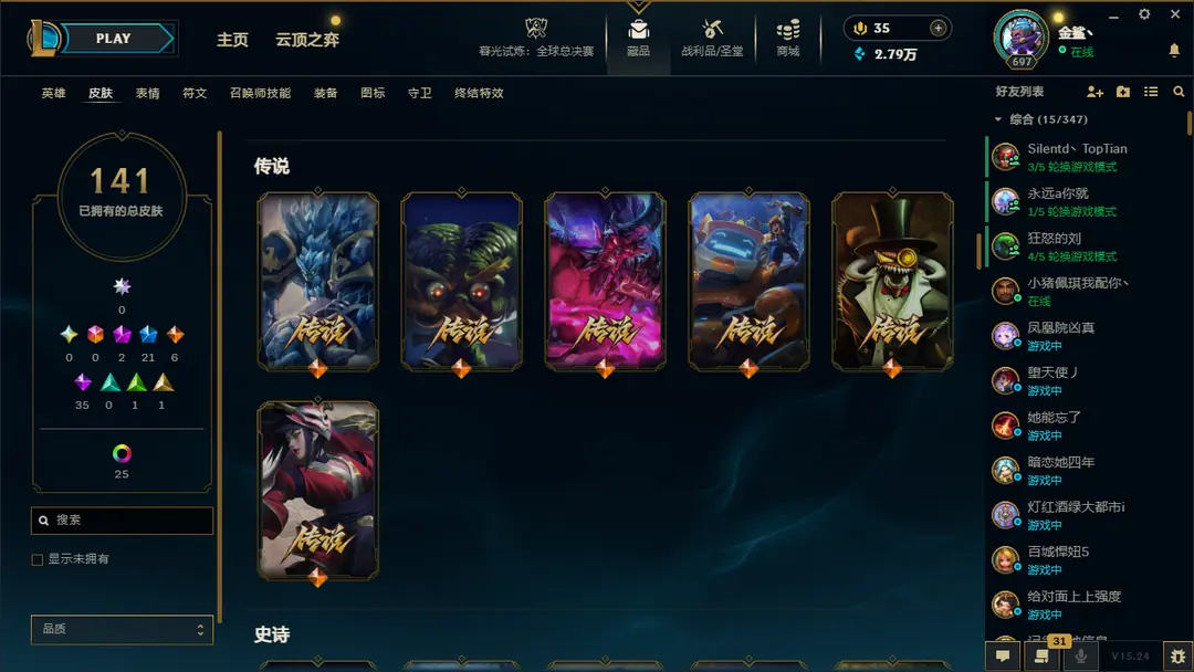 | 英雄: 172 | 皮肤: 148 |