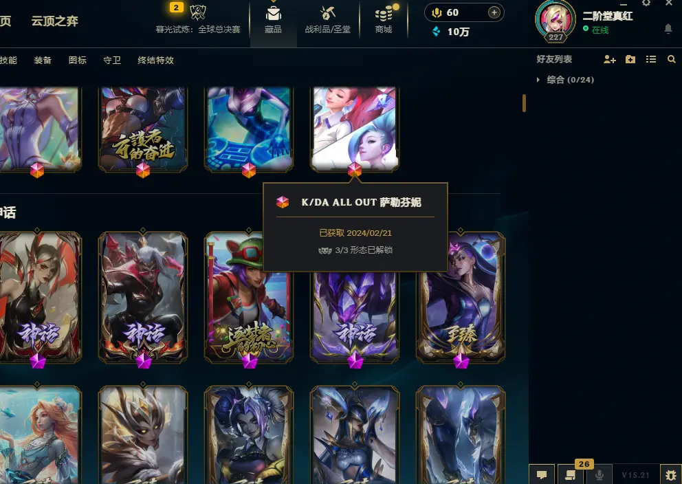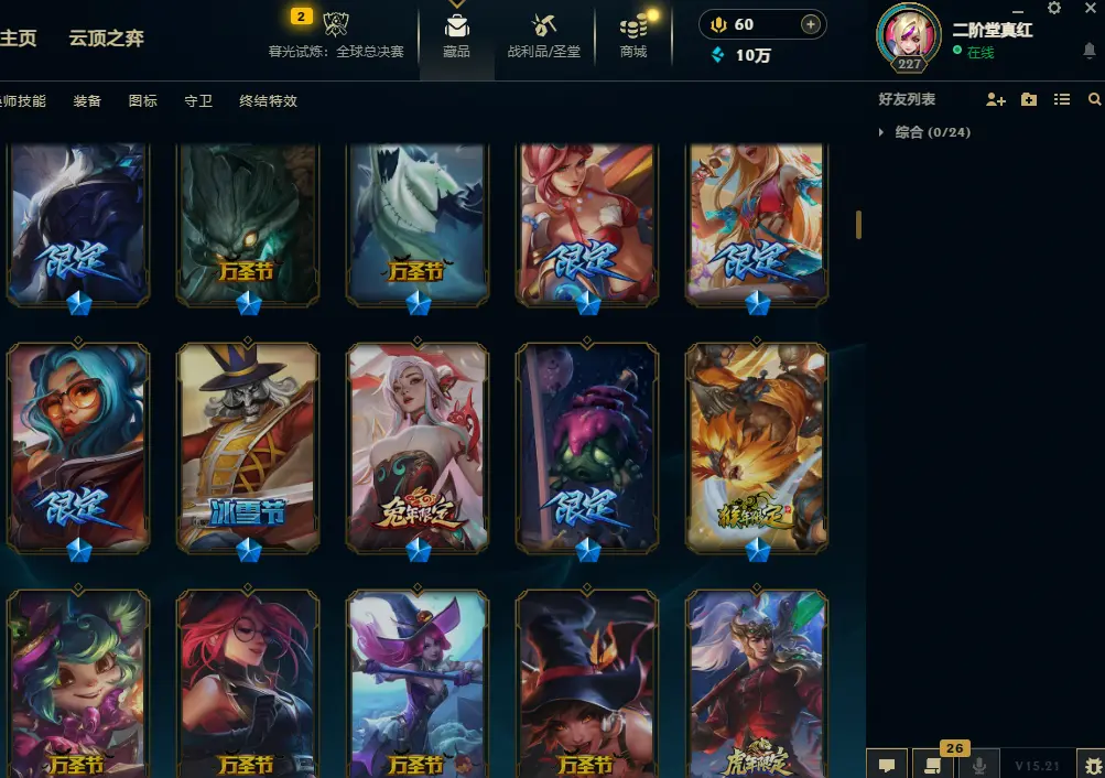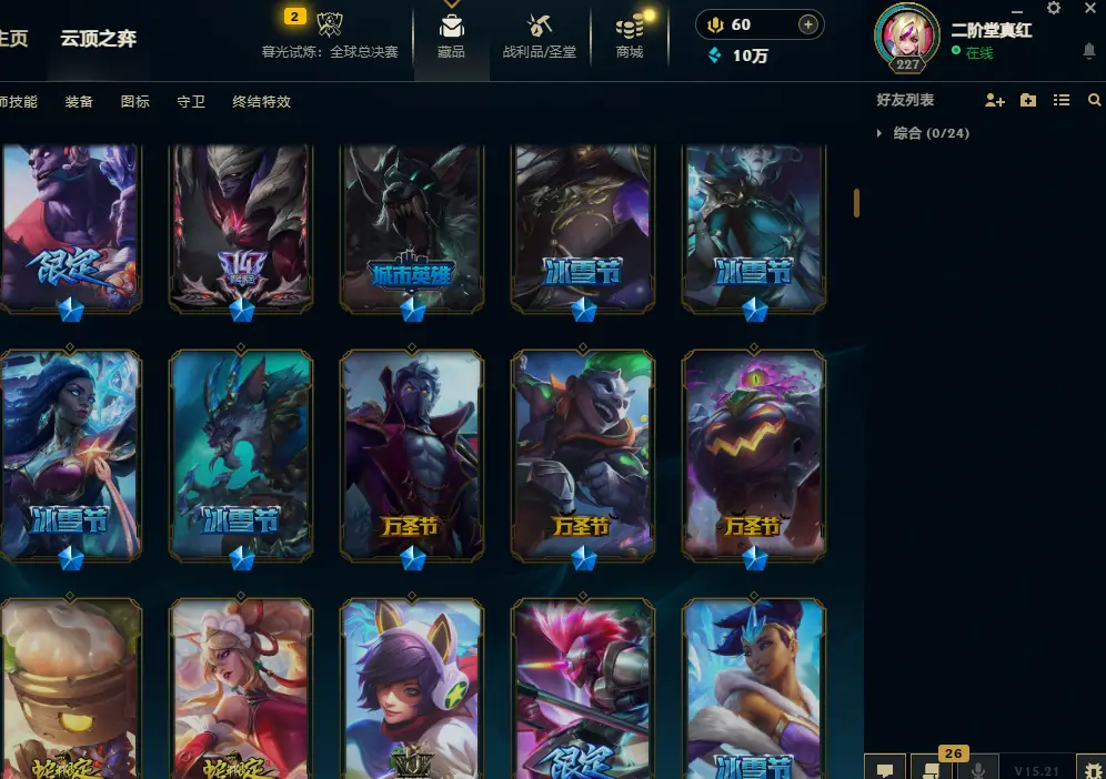 黑色玫瑰1300皮肤可排位双名人堂6终极萨勒芬妮美猴王海之歌灵魂亚索永恩套双城SKT-IG-冰雪套