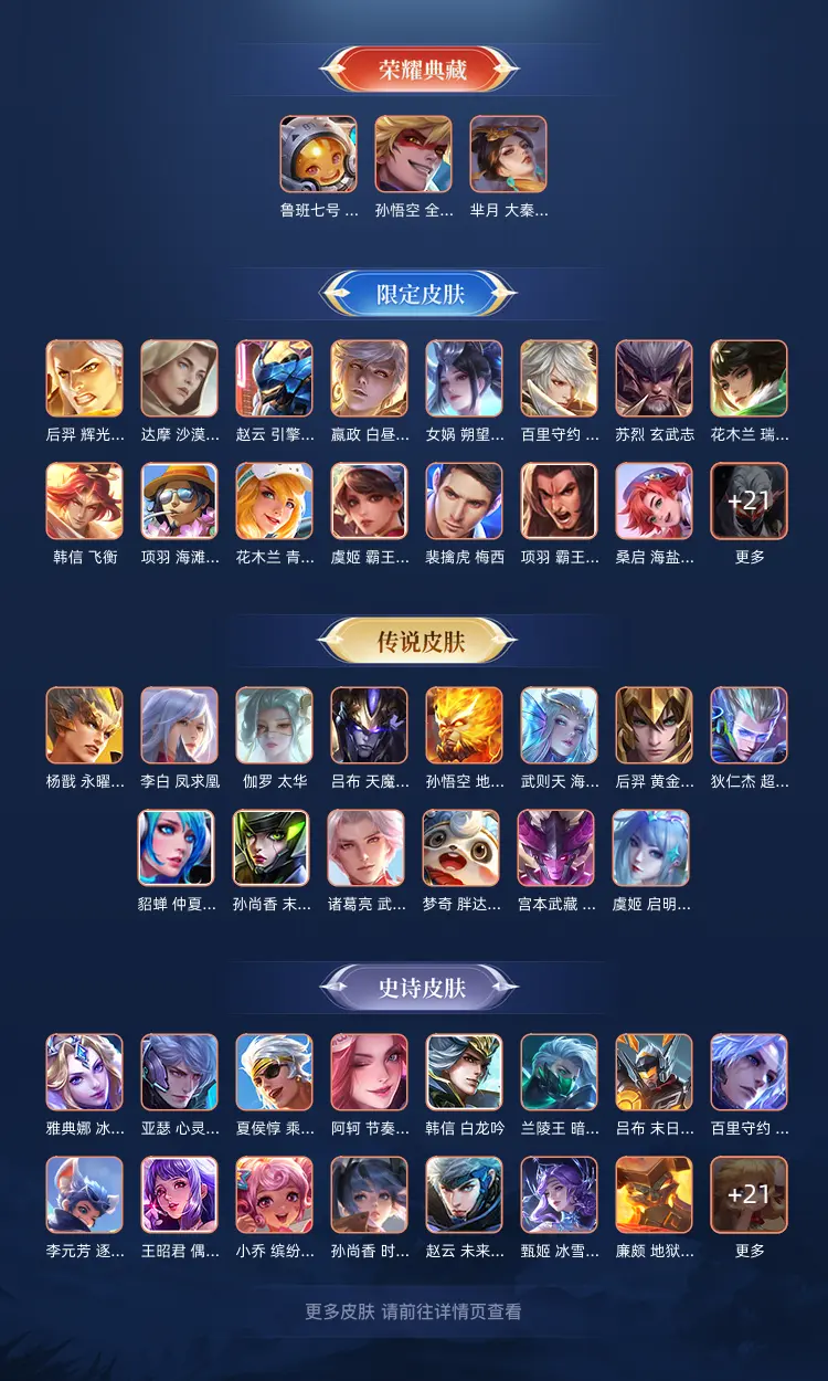 本游戏账号: V8用户,基础段位:至尊星耀V,英雄多,皮肤多。典藏皮肤3个,感受典藏皮肤带来的优质体验快感, 私人所属英雄皮肤有:鲁班七号 星空梦想||芈月 大秦宣太后||孙悟空 全息碎影诸葛亮 武陵仙君||梦奇 胖达荣荣||孙尚香 末日机甲||吕布 天魔缭乱||宫本武藏 地狱之眼||李白 凤求凰||狄仁杰 超时空战士||武则天 海洋之心||貂蝉 仲夏夜之梦||孙悟空 地狱火||后羿 黄金射手座||虞姬 启明星使||杨戬 永曜之星||伽罗 太华,等等