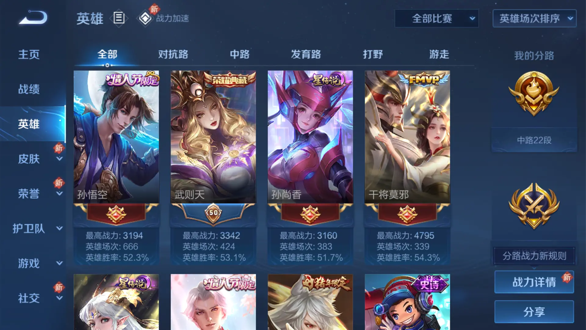 本游戏账号: V10用户,基础段位:永恒钻石II,英雄多,皮肤多。典藏皮肤5个,感受典藏皮肤带来的优质体验快感,FMVP皮肤4个,尽情享受FMVP皮肤带来的主角光环, 私人所属英雄皮肤有:鲁班七号 星空梦想||夏侯惇 无限飓风号||武则天 倪克斯神谕||孙悟空 全息碎影||小乔 天鹅之梦诸葛亮 武陵仙君||梦奇 胖达荣荣||孙尚香 末日机甲||吕布 天魔缭乱||宫本武藏 地狱之眼||李白 凤求凰||狄仁杰 超时空战士||达摩 黄金狮子座||武则天 海洋之心||貂蝉 仲夏夜之梦||艾琳 觅芳踪||张良 黄金白羊座||孙悟空 地狱火||后羿 黄金射手座||虞姬 启明星使||虞姬 云霓雀翎||杨戬 永曜之星||李信 一念神魔||伽罗 太华,等等