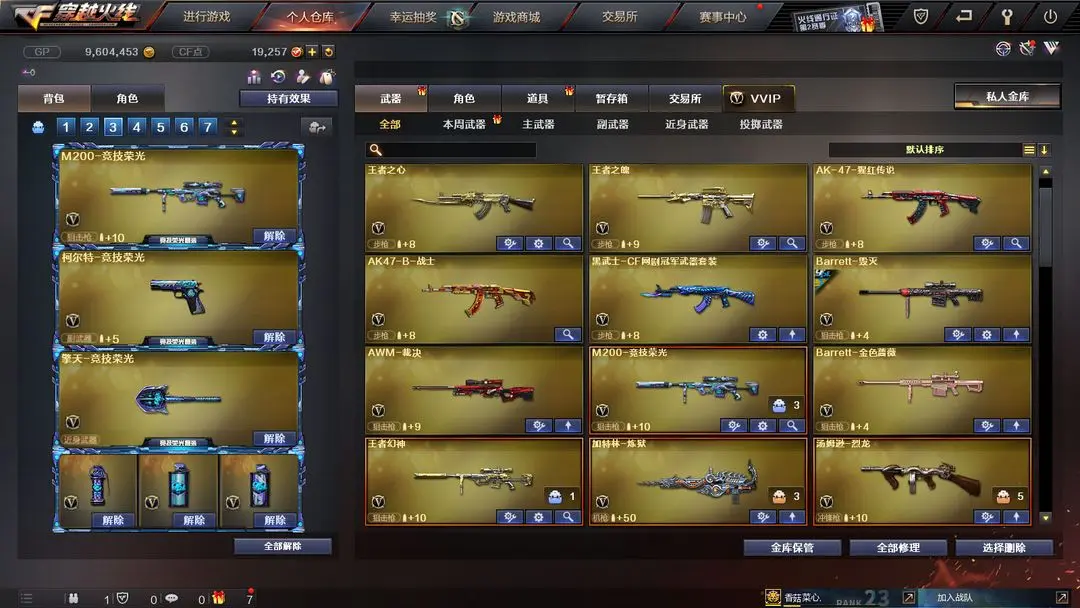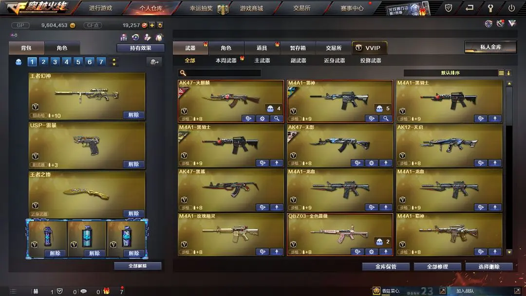 【装备道具】:幻神三件套/传说灵眸/M200-幻神/幻神冠军之幻/幻神音效卡★觉醒王者风神★6烈龙/炼狱小刚/双面神/狂怒咆哮/黑龙吞噬者/王者白虎/王者芳薇/QBZ金色蔷薇/QBZ天罚/金色蔷薇/QBZ巅峰荣耀★毁灭/毁灭音效卡/黑骑士/黑骑士音效卡/黑龙/黑龙音效卡★极光/极光音效卡★王者之怒★觉醒王者之光★王者白虎★M4A1-雷霆王者★大炮雷霆王者★COP雷霆王者★雷霆王者志锋★王者之霆★qbz王者蔷薇★我再白虎★王者火魄★王者之魄★王者之烈★王者之魂★王者之击★王者迷迭香★王者涂鸦★春★影豹★职业选手★幽雷霆王者★女战神★幻神音效卡★毁灭音效卡★黑黑骑士音效卡★黑龙音效卡★极光音效卡★烈火动感闪耀★USP雷暴★天神动感闪耀★COP旗袍★雷神LGD冠军皮肤★QBZ天罚★M4A1青龙★AK47雷暴★春雷暴套★炫金骑士★炫金超新星★炫金武士★天龙曼陀罗★末日审判★爆炎激光★集束激光超越MAX★蝴蝶刀枪王排位★火麒麟华夏之心★耀金毁灭★星空毁灭★黑骑士电玩青兔★6烈龙★斯泰尔蝴蝶★炼狱迷你小钢★生化背包变更★变异宝贝死亡对讲机不退包★佣兵觉醒无需换弹手斧镜减速雷★捕食者之眼查看血量★★
