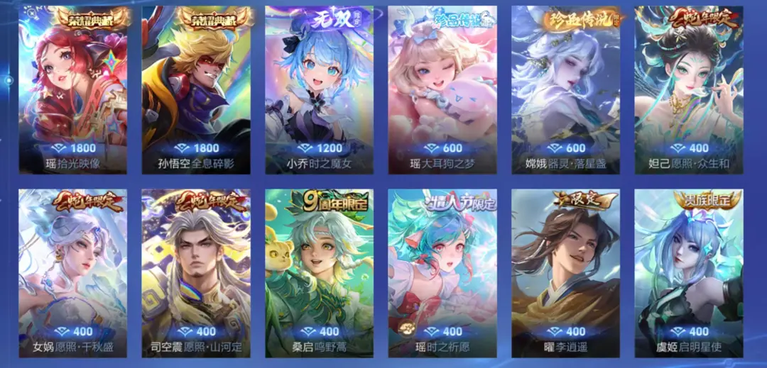 1折包天不禁言✨瑶典藏拾光映像大耳狗时之祈愿✨小乔无双时之魔女器灵落星盏✨全息碎影蛇年妲己女娲司空震