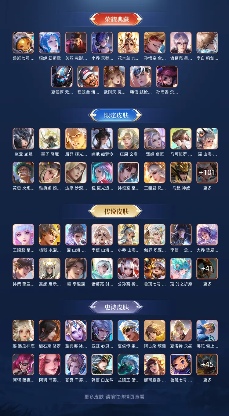 本游戏账号: V10荣耀贵族用户,基础段位:至尊星耀III,英雄多,皮肤多。典藏皮肤13个,感受典藏皮肤带来的优质体验快感,FMVP皮肤10个,尽情享受FMVP皮肤带来的主角光环, 私人所属英雄皮肤有:诸葛亮 星域神启||孙尚香 杀手不太冷||鲁班七号 星空梦想||夏侯惇 无限飓风号||李白 鸣剑·曳影||武则天 倪克斯神谕||关羽 赤影疾锋||貂蝉 幻阙歌||程咬金 活力突击||韩信 弑枪猎影||花木兰 九霄神辉||孙悟空 全息碎影||小乔 天鹅之梦,等等
