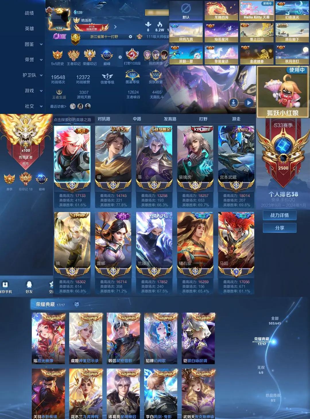 在榜百段打野❤9历史国服镜露娜老虎曜澜❤19典藏12星传说11天幕56按键❤省级打野105段