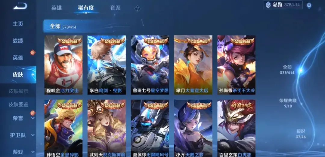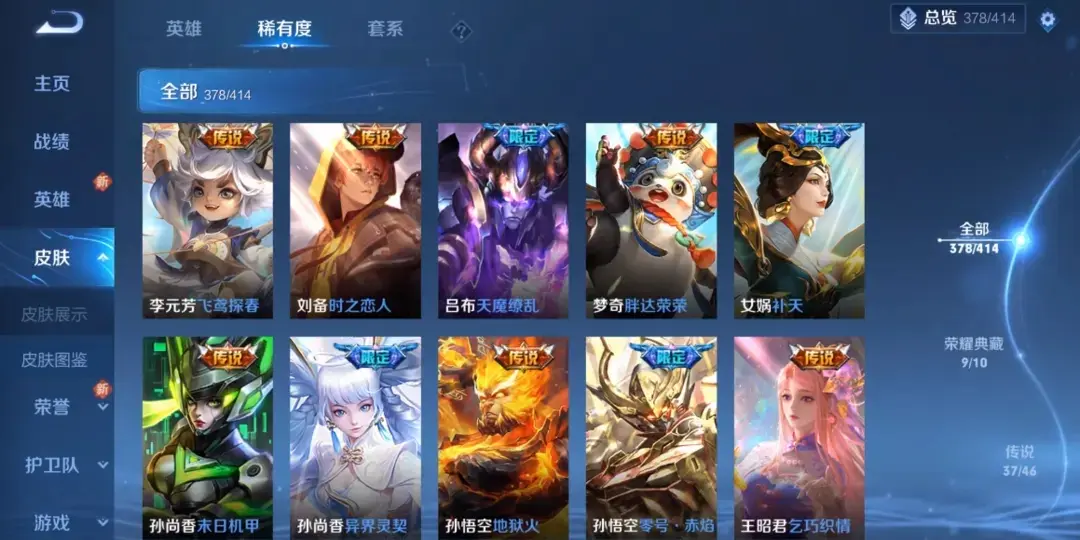 本游戏账号: V10用户,基础段位:至尊星耀III,英雄多,皮肤多。典藏皮肤9个,感受典藏皮肤带来的优质体验快感,FMVP皮肤5个,尽情享受FMVP皮肤带来的主角光环, 私人所属英雄皮肤有:孙尚香 杀手不太冷||鲁班七号 星空梦想||芈月 大秦宣太后||夏侯惇 无限飓风号||李白 鸣剑·曳影||武则天 倪克斯神谕||程咬金 活力突击||孙悟空 全息碎影||小乔 天鹅之梦,等等