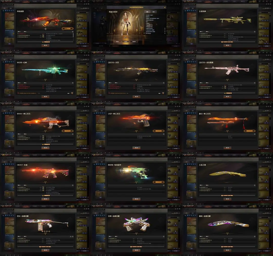 【装备道具】:【四防传说艾莉莎,传说夜影】【m200幻神 荣耀世冠白鲨★动感闪耀幻神皮肤★幻神音效卡】【觉醒王者风神】【qbz金色蔷薇★荣耀世冠白鲨★qbz音效卡】【qbz天罚】【hk417朱雀★武当朱雀皮肤】【6烈龙 死亡之眼】【黄金猫猫手套-白鲨】【神工天巧套装★M4A1-神工天巧★柯尔特-电竞装甲★USP神工天巧】【雷神 战神赵云/雷神耀金/能量核心/暗月】【火麒麟-冠军之心/心动糖果/cfstar】【黑骑士 冠军之势/暗月】【ak47无影 耀金】【毁灭 战神张飞/直播专属/暗月】【awm天龙 秘银/能量核心】【aa12雷霆,m4a1玫瑰精灵,烈火动感闪耀,m4a1武圣,an94超新星,ak47黑武士,m4a1千变】【王者之势,王者风神,王者之锋】【炼狱】【沙鹰修罗6】【柯尔特电竞装甲】【沙鹰天神】【usp神工天巧】【天神动感闪耀】【黑龙吞噬者,神圣爆裂者末日lll】【晴雅,兰巾帼英雄,月兔特工,暗夜审判】★灵狐者-职业经理★传情小小语音包★女主播★暗夜X★月兔特工★乔伊教练★王者迷迭香★荣耀之证卡牌★变异宝贝死亡对讲机不退包★佣兵觉醒无需换弹手斧镜减速雷★捕食者之眼查看血量★