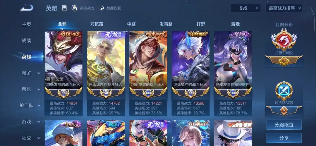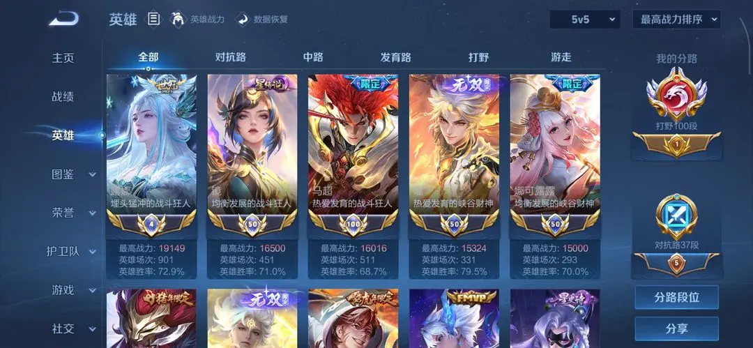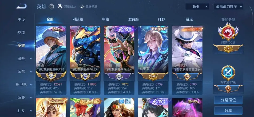 上号看图!百段打野❤马年限定皮肤全䃼❤李信无双❤1大国11小国❤1.9国4露娜国服镜马超曜澜❤双小