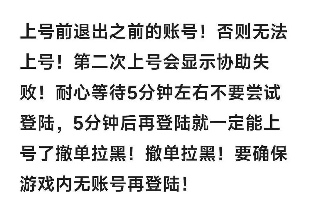 ✅第一步若是没退出登陆再次上号会显示上号失败【勿必退出登陆】等10分钟再次上号或者重启手机即可!撤单拉黑!❎